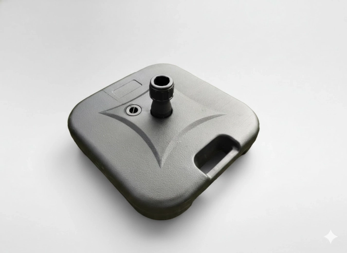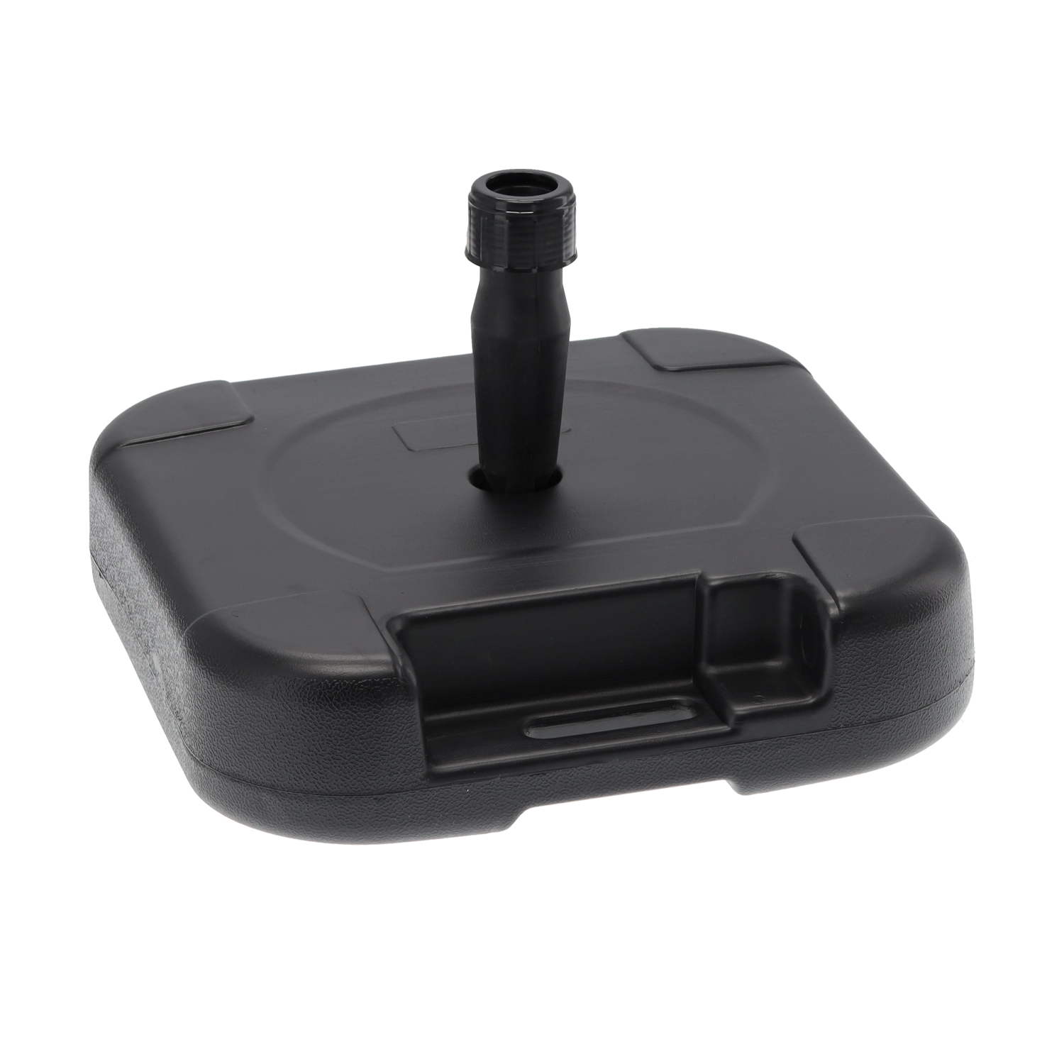 De duurzame parasolvoet is een slimme oplossing voor iedereen die op zoek is naar eenvoudige bediening en betrouwbare stabiliteit. Vullen met water (tot 19 l) zorgt voor het benodigde gewicht, terwijl de lege voet licht is en dankzij de praktische handgreep gemakkelijk te dragen.