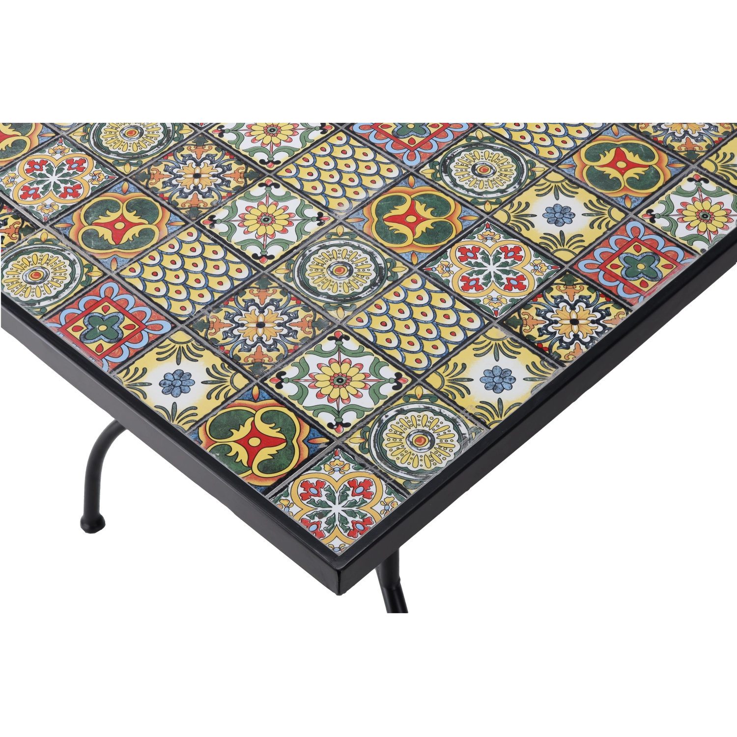 Kleurige geometrische en botanische motieven in de mozaïek zorgen voor een unieke look en geven je buitenruimte een eigen stijl. Het gladde oppervlak is na elk samenzijn eenvoudig schoon te maken.