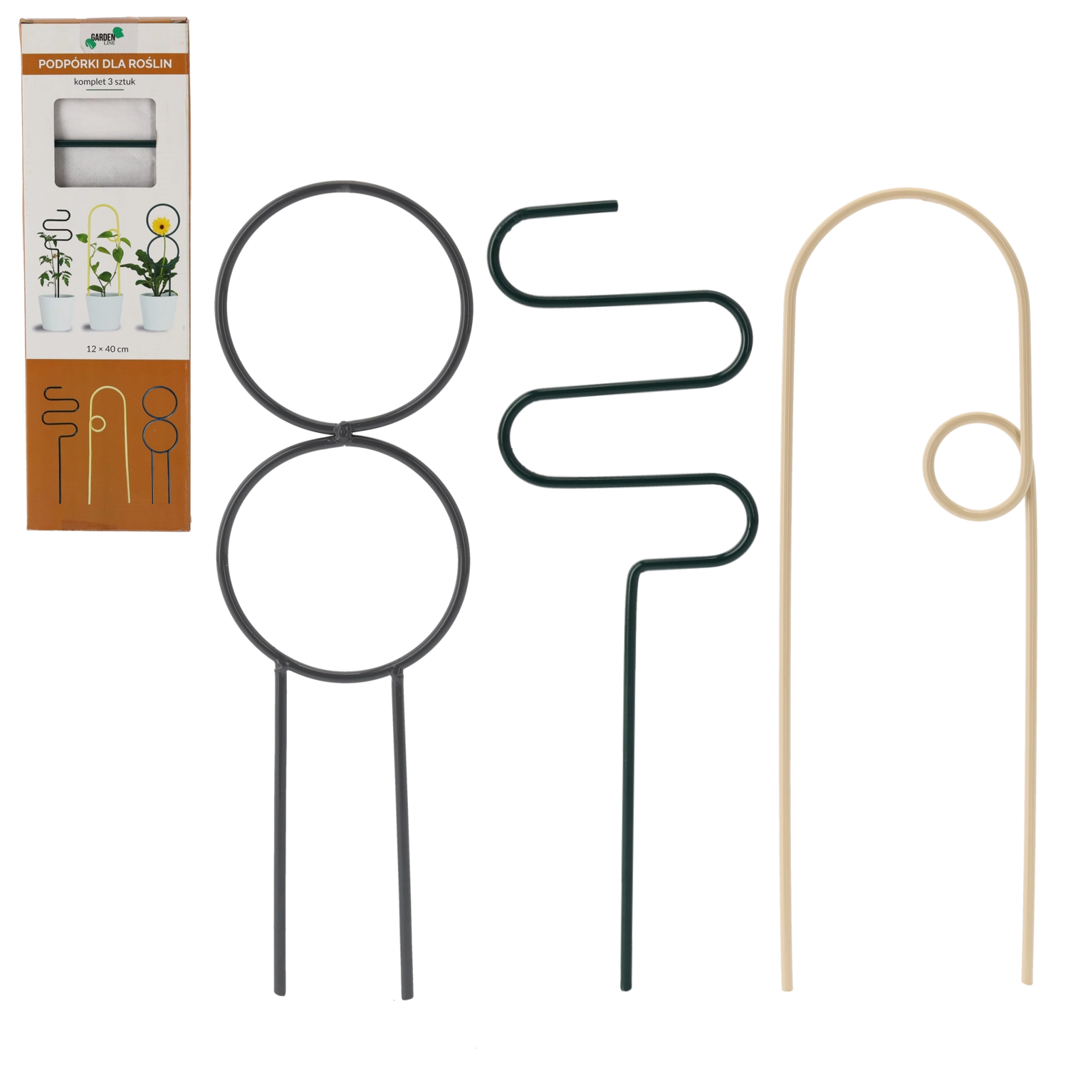 De installatie kost slechts een moment – steek de steunen in de pot bij de wortels en bevestig de ranken er geleidelijk aan. De verschillende patronen in de set maken het mogelijk de ondersteuning af te stemmen op de specifieke behoeften van elke plant.