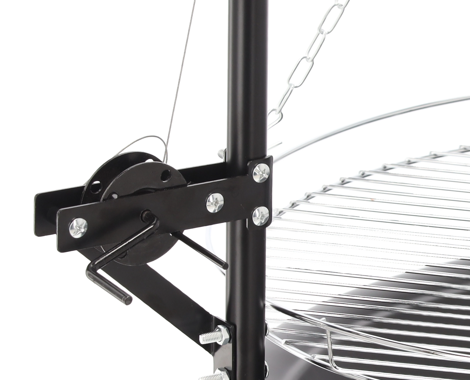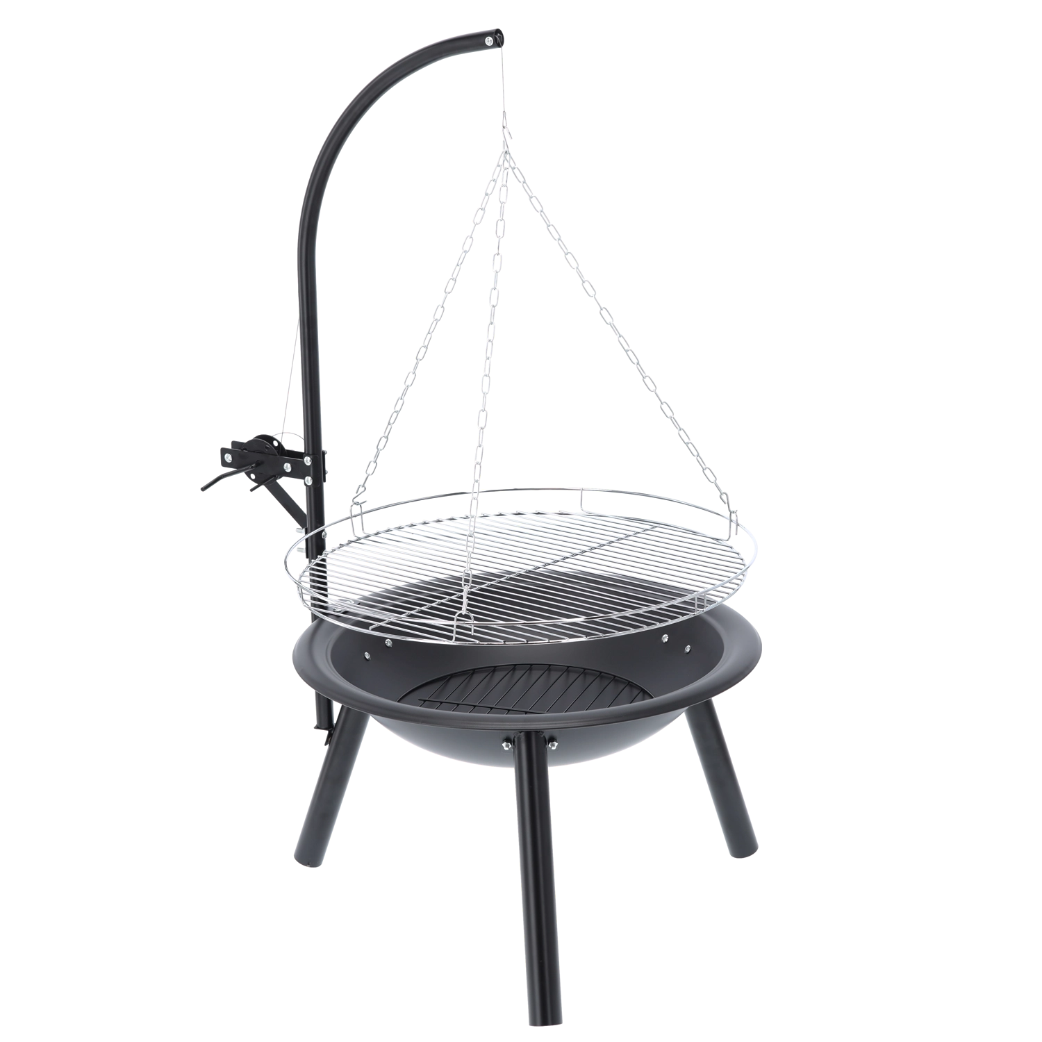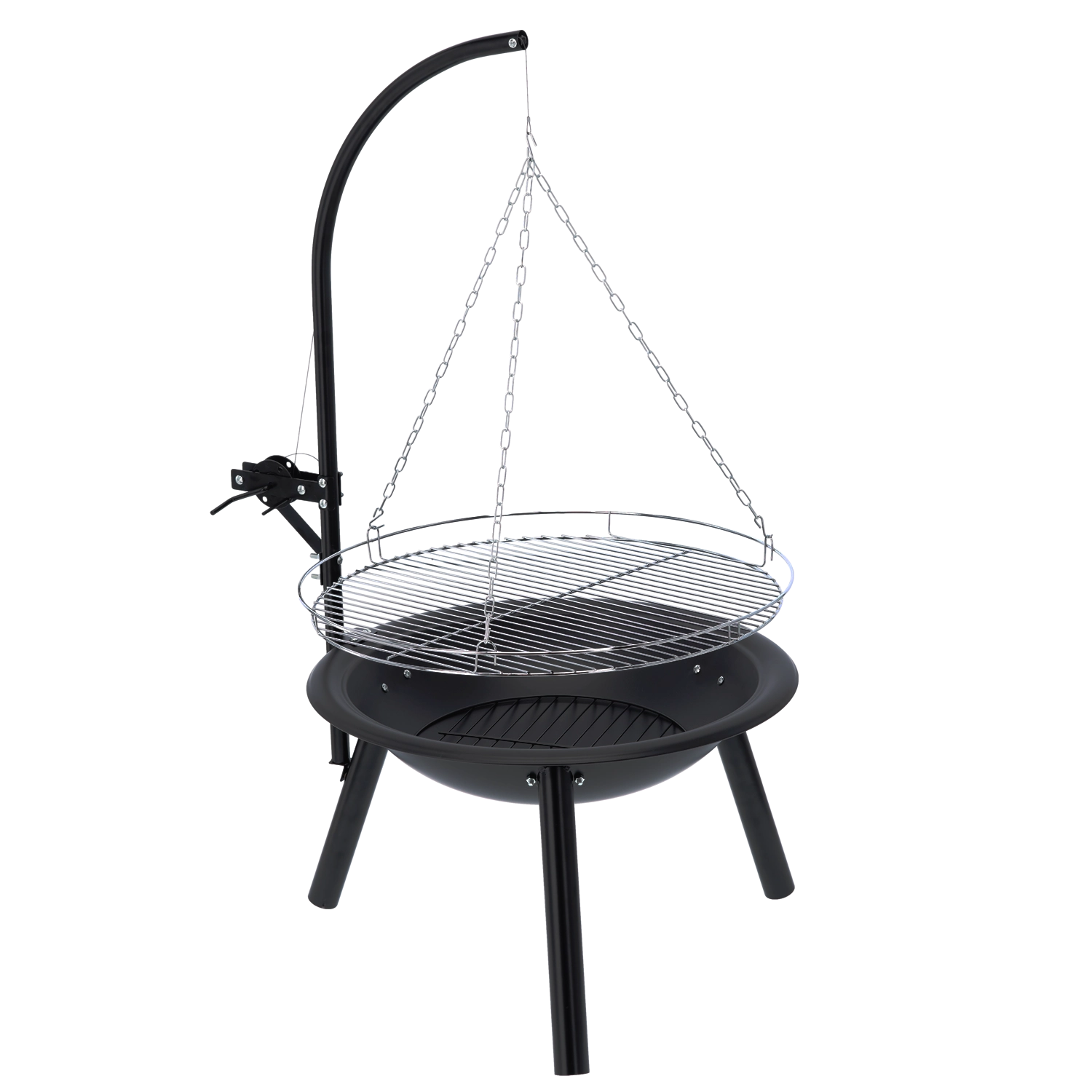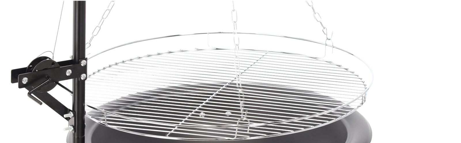 Geniet van de authentieke smaak van gerechten bereid boven open vuur. De hangende grill combineert de traditionele charme van een vuurhaard met het gemak van een in hoogte verstelbaar rooster, zodat je de intensiteit van de hitte eenvoudig afstemt op verschillende soorten vlees, groenten en kazen. De stabiele driepoot en de robuuste vuurkom zorgen voor veilig gebruik en een lange levensduur.