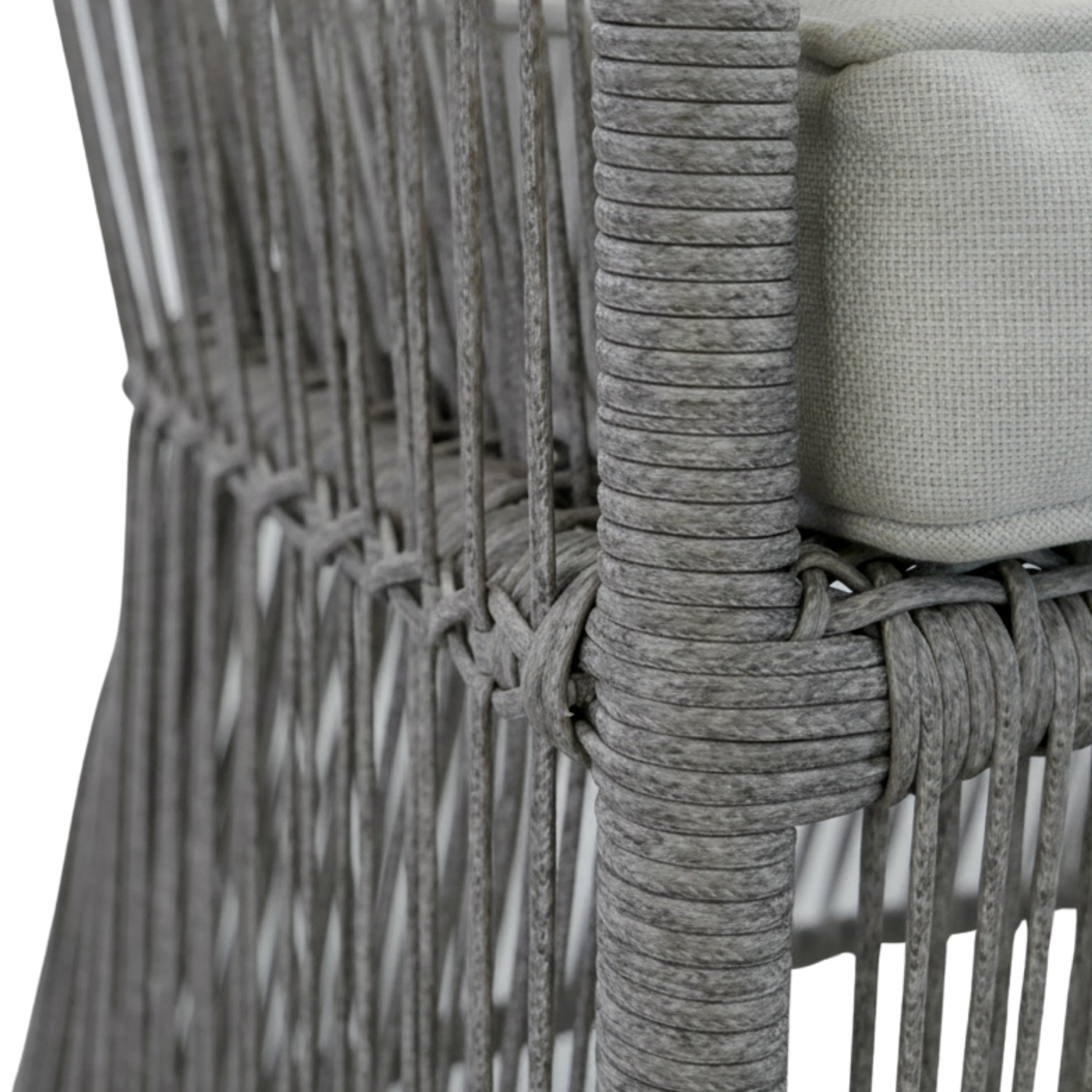 De set is ontworpen voor dagelijks comfort en een lange levensduur. Lichte maar stabiele aluminium frames zijn bestand tegen corrosie en wisselende weersomstandigheden. Het open rotanvlechtwerk zorgt voor luchtigheid en stijl, terwijl 8 cm dikke zitkussens met afneembare hoezen voor prettig zitten en eenvoudig reinigen zorgen.