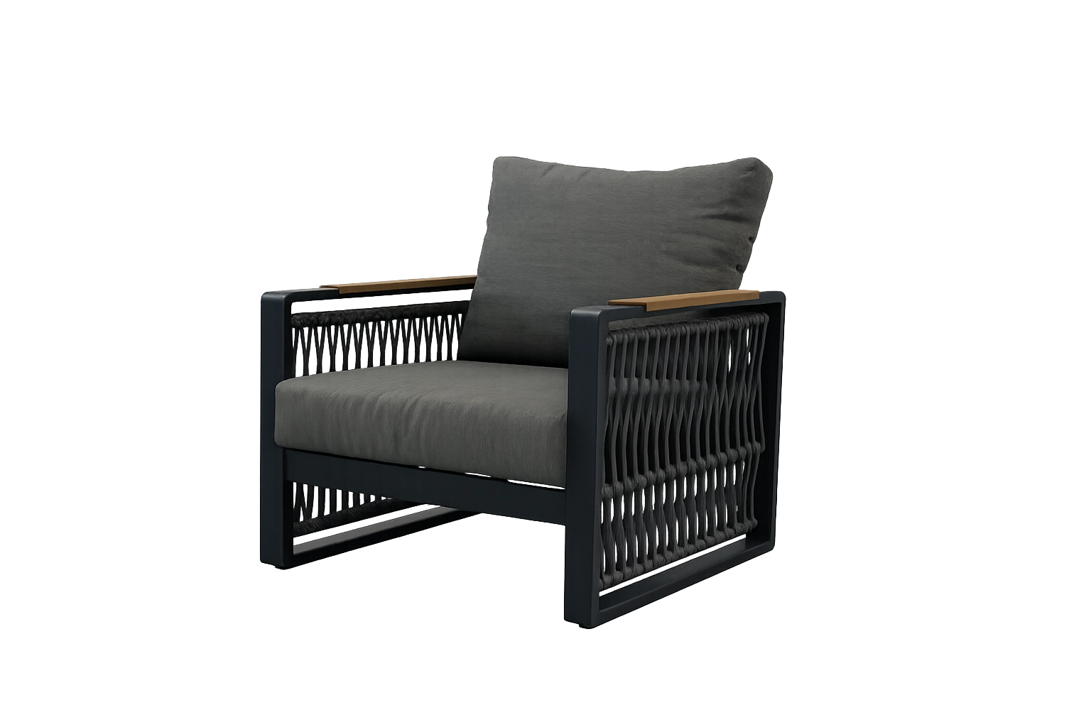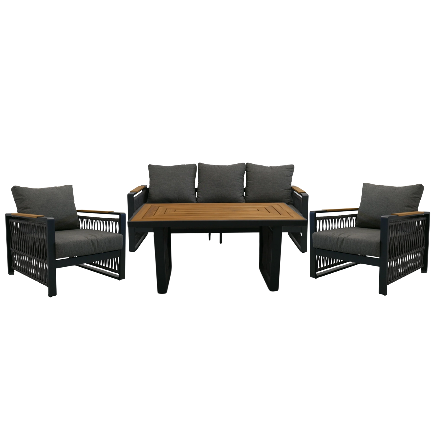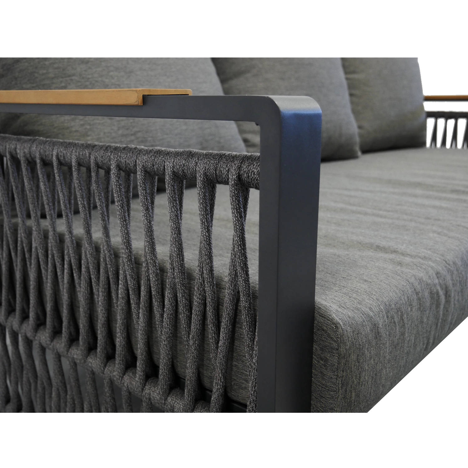 Het design-vlechtwerk van touw geeft de set een luchtige uitstraling, hoge esthetiek en tegelijk duurzaamheid bij dagelijks gebruik.