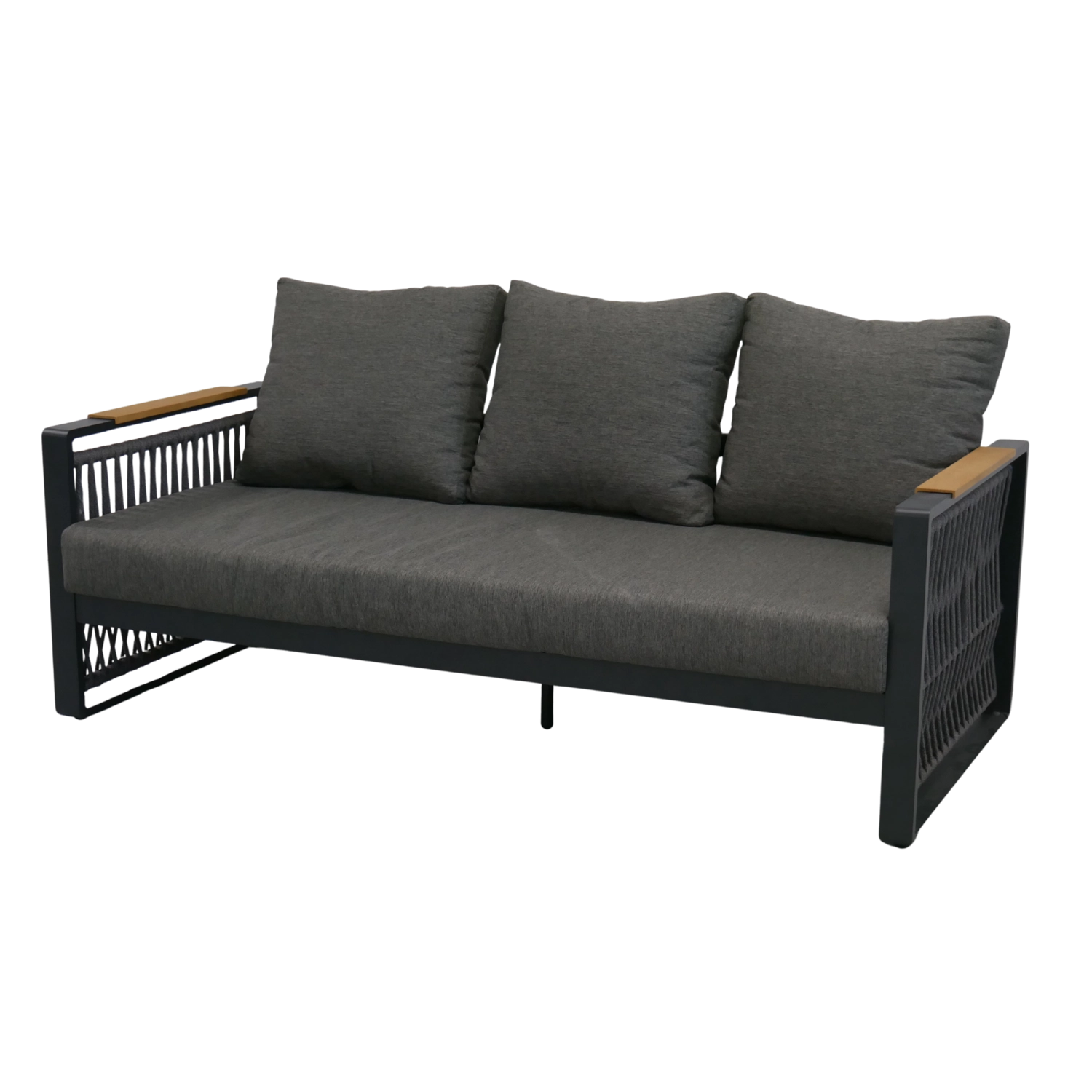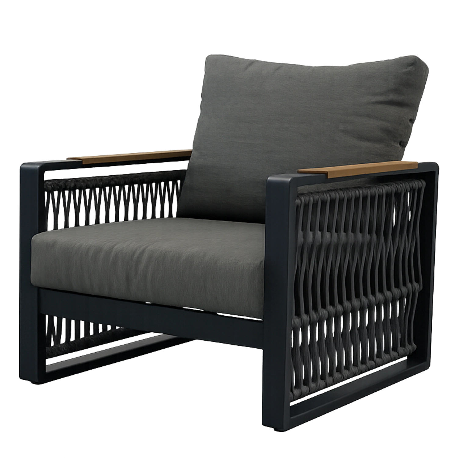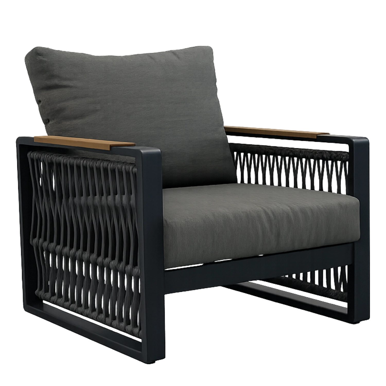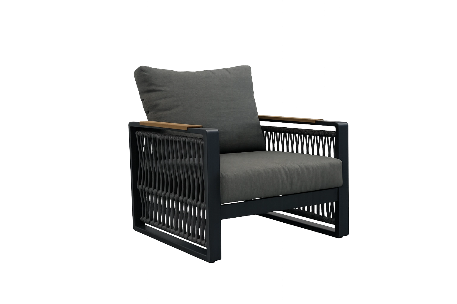 Het design-vlechtwerk van touw geeft de set een luchtige uitstraling, hoge esthetiek en tegelijk duurzaamheid bij dagelijks gebruik.