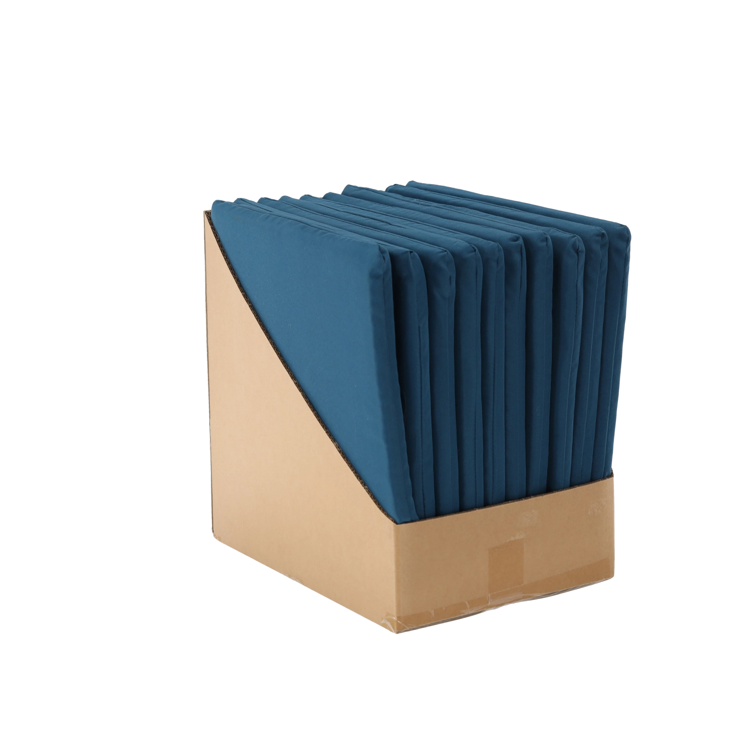 Dit blauwe stoelkussen is een ideale keuze voor zowel binnen als overdekt buitengebruik. Dankzij de slijtvaste polyesterhoes en het makkelijke onderhoud geniet je elke dag van comfort. De geïntegreerde striklinten voor bevestiging voorkomen wegglijden, zodat het kussen precies blijft liggen waar het hoort.