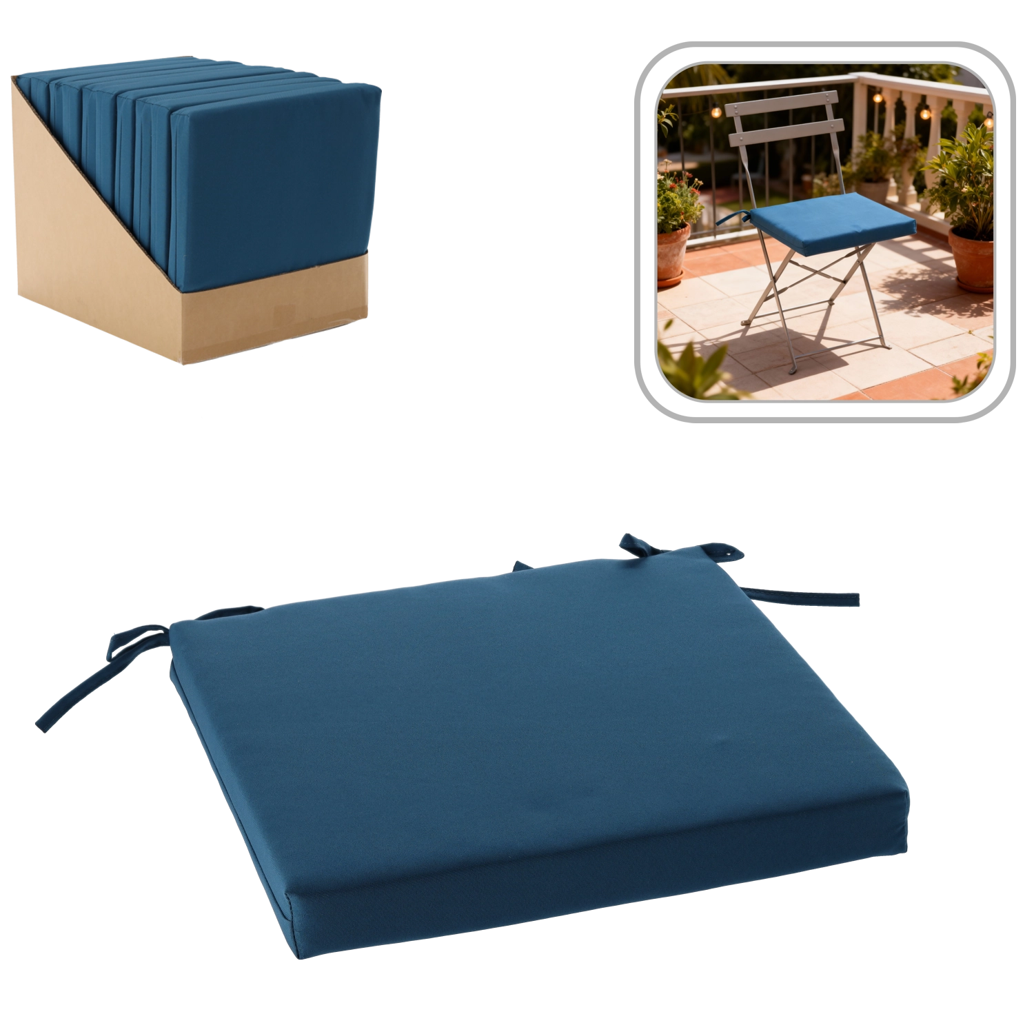Het kussen past op de meeste standaardstoelen dankzij het universele formaat van 40 × 40 × 5 cm. De elegante blauwe kleur is gemakkelijk te combineren met je interieur en tuinmeubelen en geeft je ruimte een frisse uitstraling.