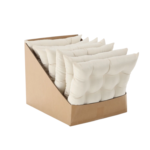 Het beige, gepolsterde stoelkussen is een ideale keuze voor keuken-, eet- en tuinstoelen. De neutrale tint laat zich makkelijk combineren met de meeste interieurs, terwijl de 6 cm hoge vulling duidelijk meer zitcomfort biedt. 9 decoratieve, doorgestikte punten helpen de vulling gelijkmatig te verdelen en de elegante look te behouden.