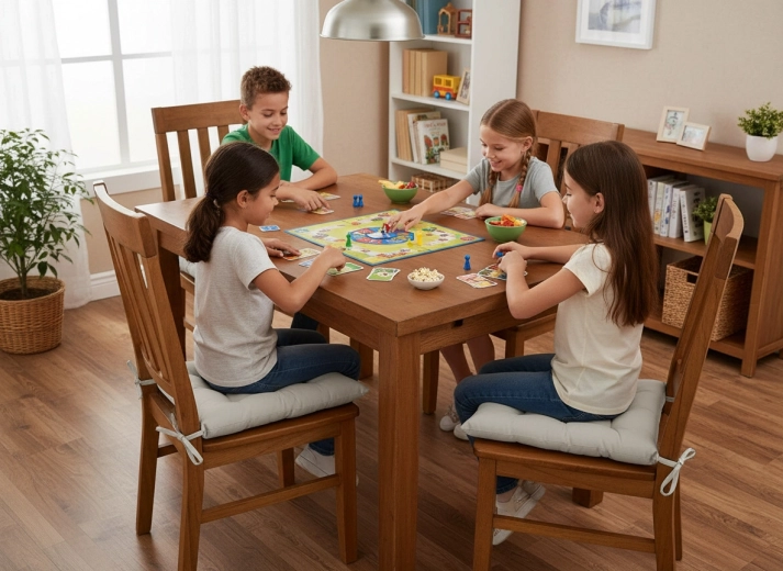De zachte vulling met een dikte van 6 cm biedt aangename steun voor rug en zit bij dagelijks gebruik, zowel aan de eettafel als tijdens het werk.