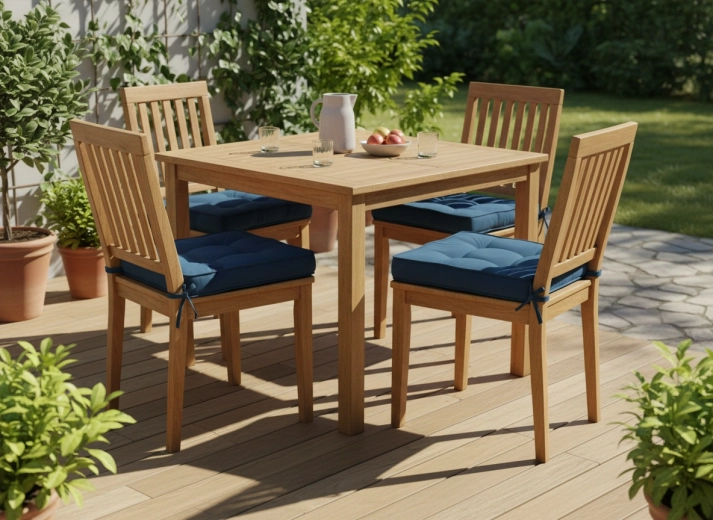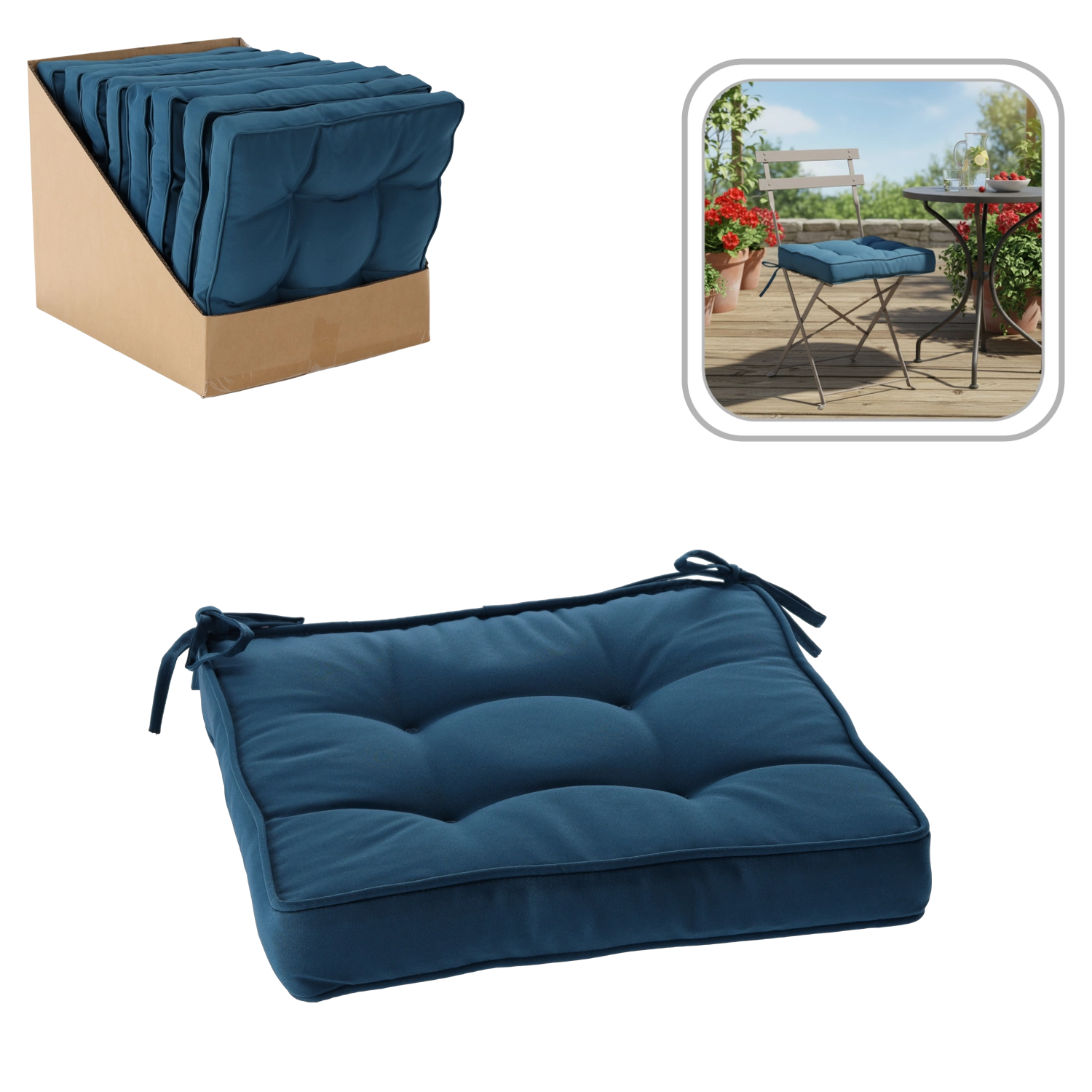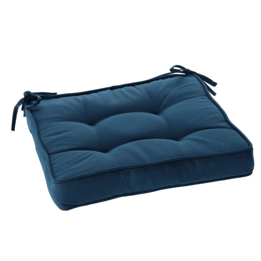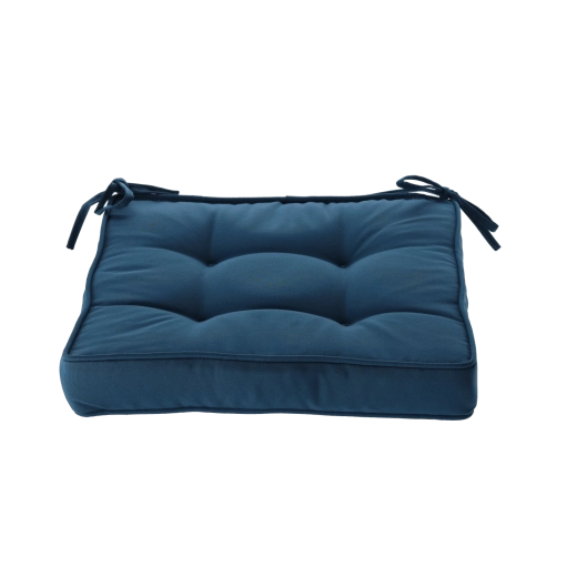 Praktische bindlinten voor bevestiging aan de stoel voorkomen wegglijden, zodat het kussen precies blijft waar je het nodig hebt. De blauwe tint combineert moeiteloos met houten meubels en een modern interieur en zorgt buiten voor een prettige, comfortabele sfeer.