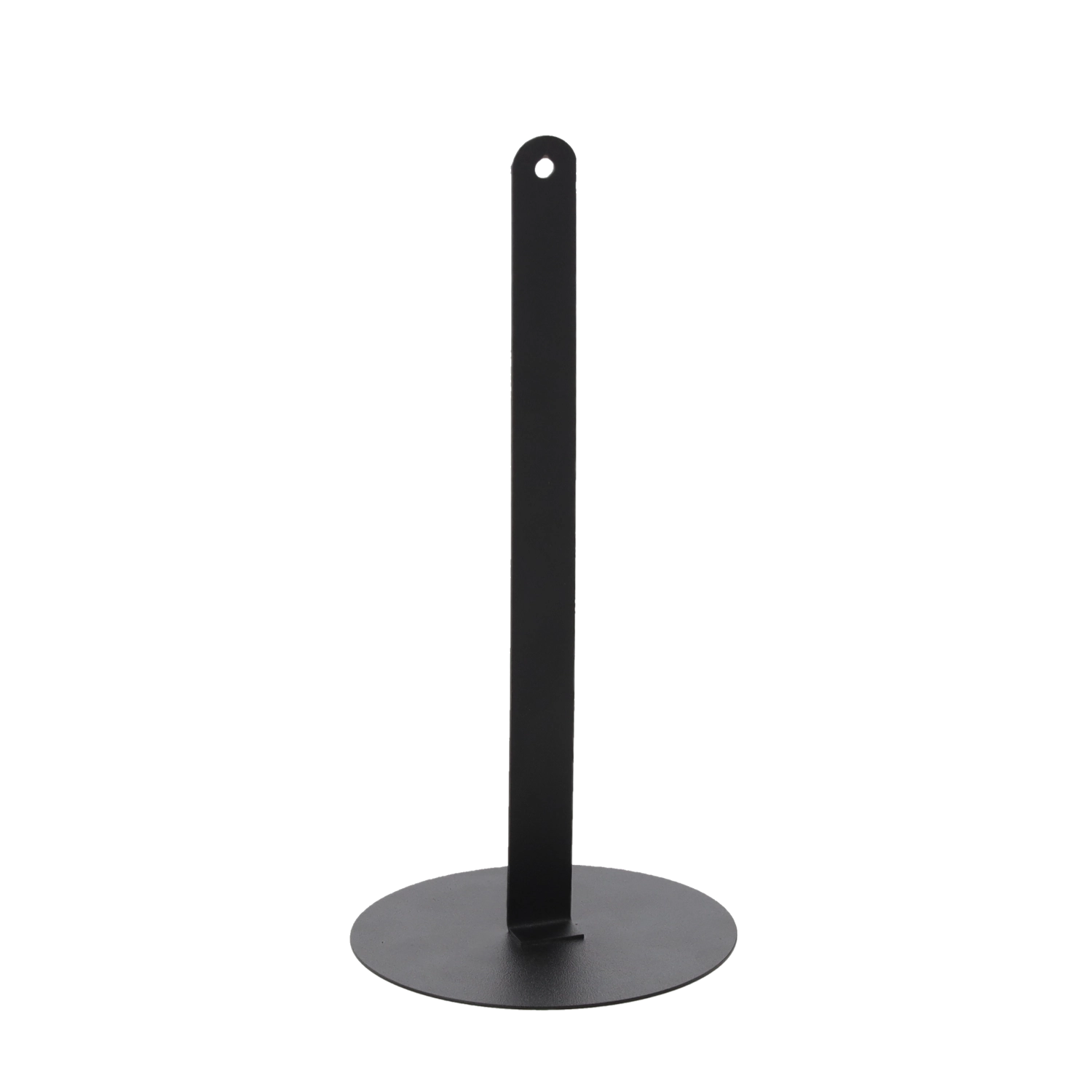 Cilinderglas beschermt de vlam tegen tocht en aanraking; de robuuste zwarte basis met decoratieve steentjes zorgt voor stabiliteit en stijl.