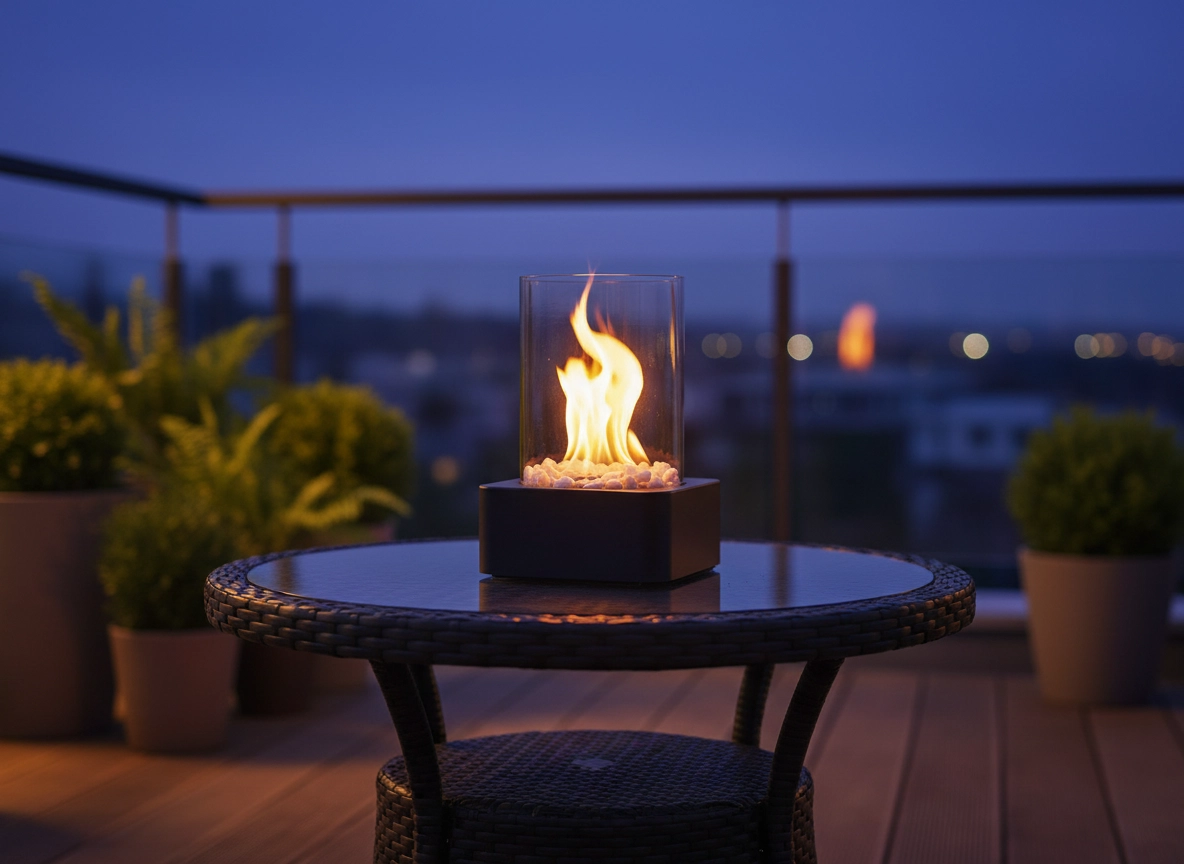 Echt vuur zonder rook en roet zorgt voor aangename warmte en romantisch licht – ideaal voor relaxen en avondlijke ontmoetingen.