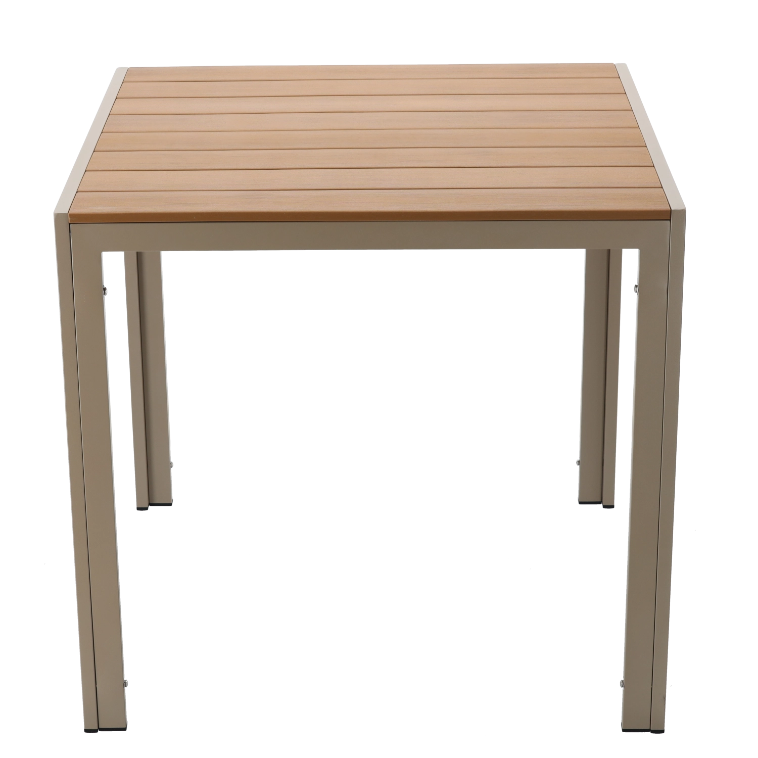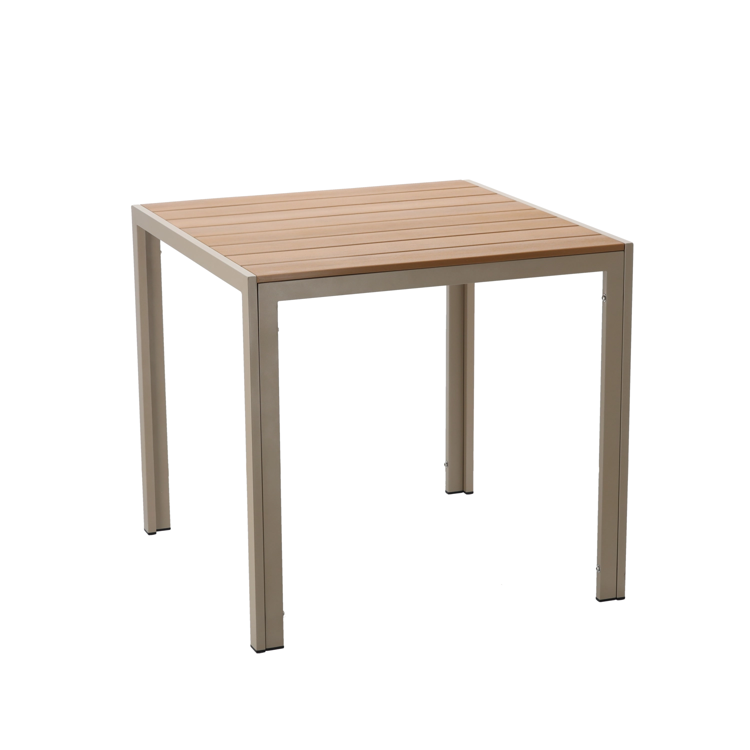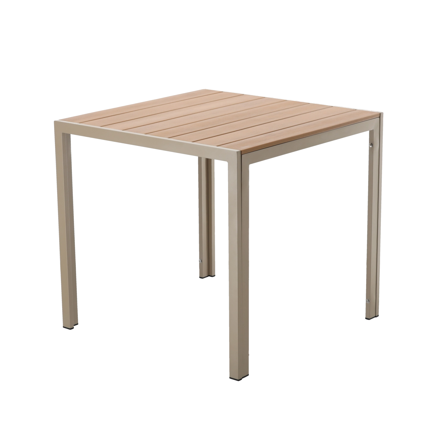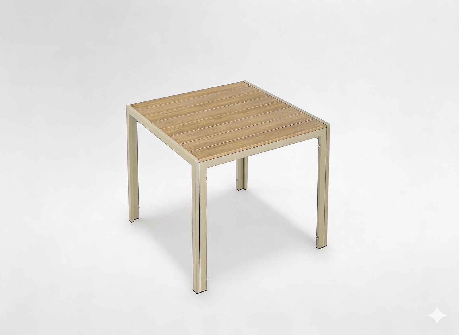 Dankzij het vierkante formaat van 80 × 80 cm is de tafel perfect voor kleinere ruimtes en een intieme zitplek. Het stabiele aluminium frame en de hoogwaardige verbindingen met lasnaden en roestvrijstalen schroeven zorgen voor een lange levensduur en stevigheid bij dagelijks gebruik.