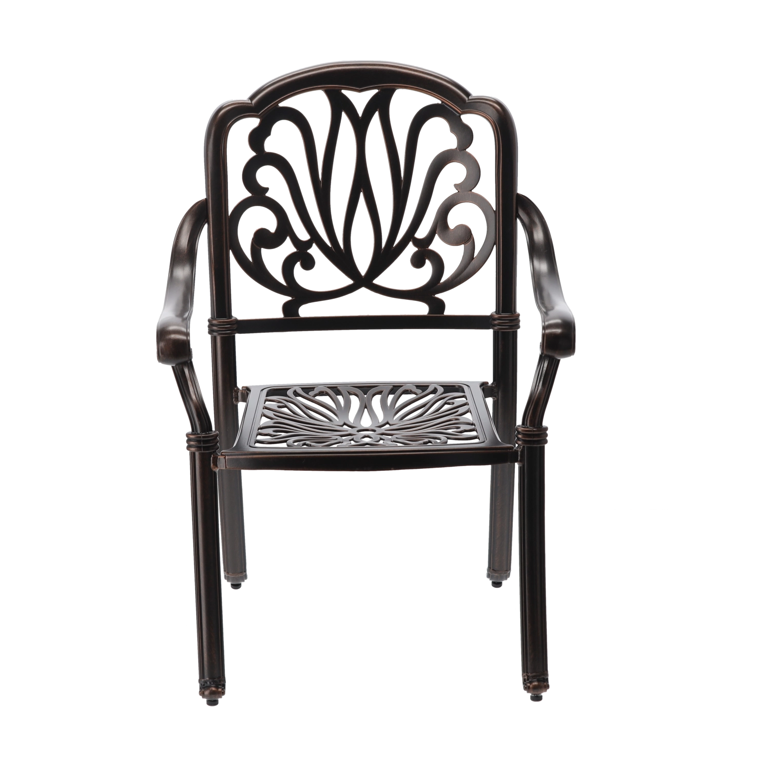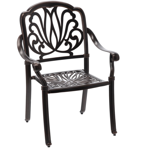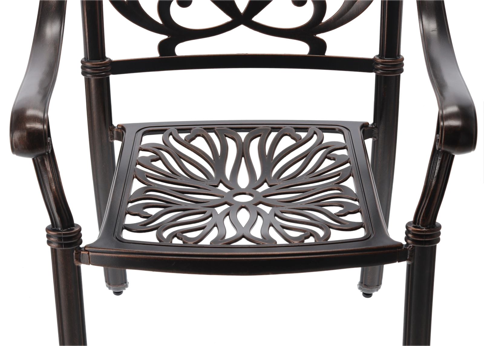 Het slijtvaste oppervlak in een elegante antiek bronzen tint beschermt tegen weersinvloeden en krassen en benadrukt tegelijk de klassieke uitstraling van de stoel.