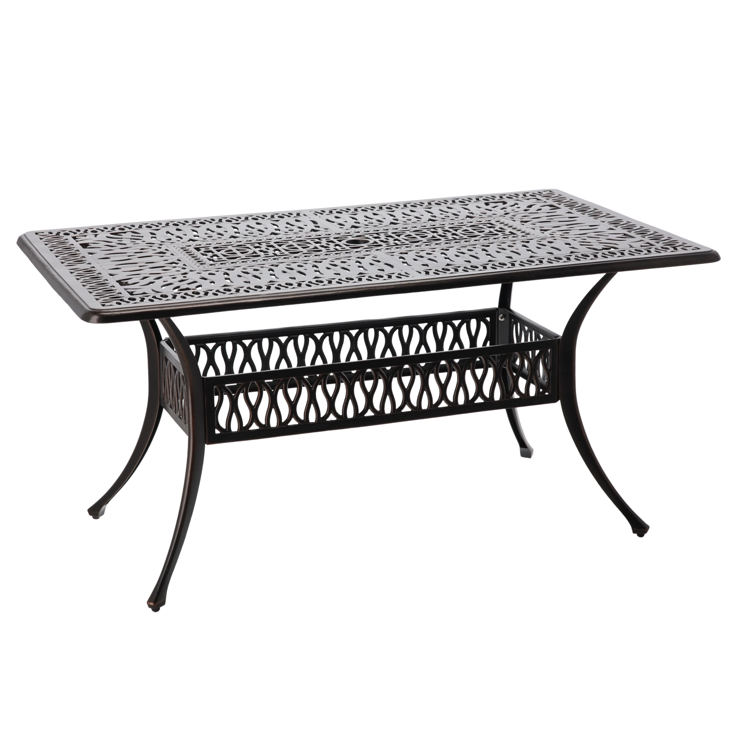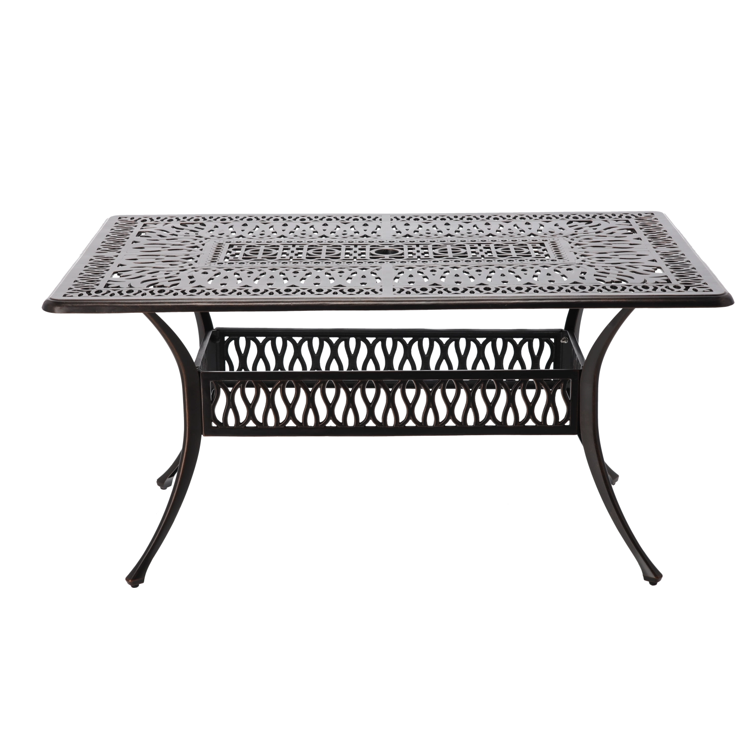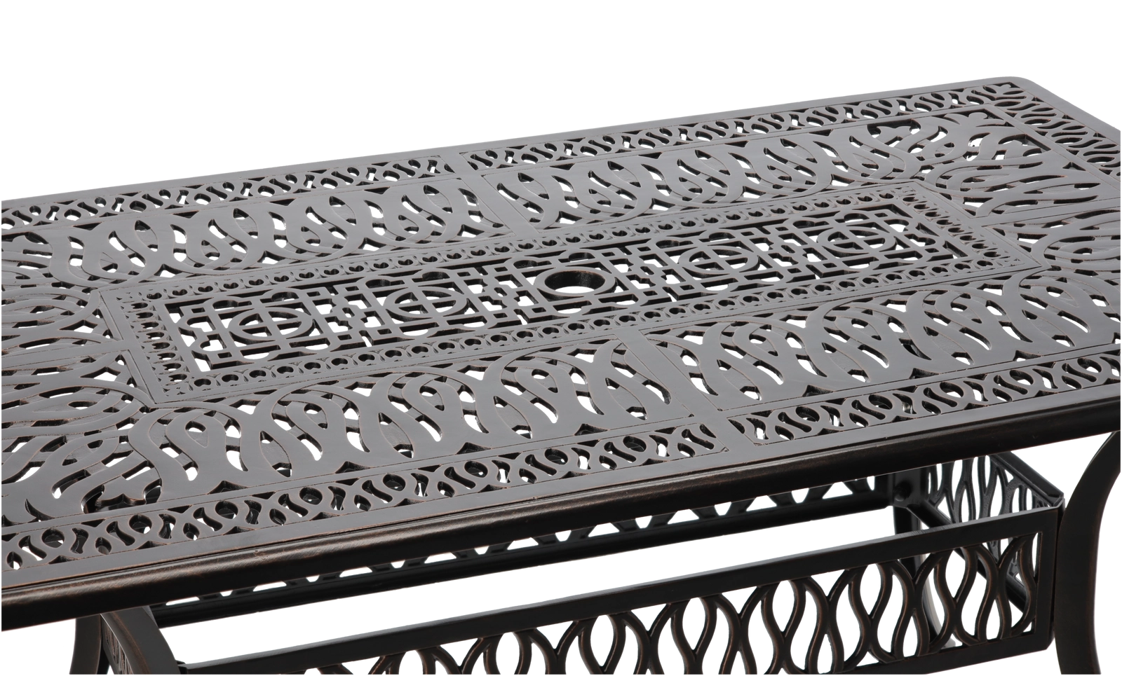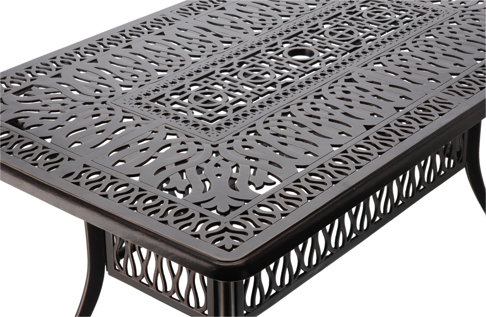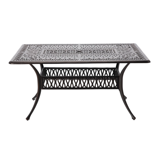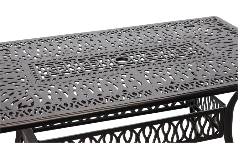 De Hastings-tafel is een tijdloos stuk voor buitenzitjes. Dankzij de duurzame aluminium constructie is hij licht maar sterk, en de poedercoating zorgt voor hoge weerstand tegen weer en corrosie. De antiek bronzen kleur met subtiel kopereffect geeft je terras een elegante uitstraling.