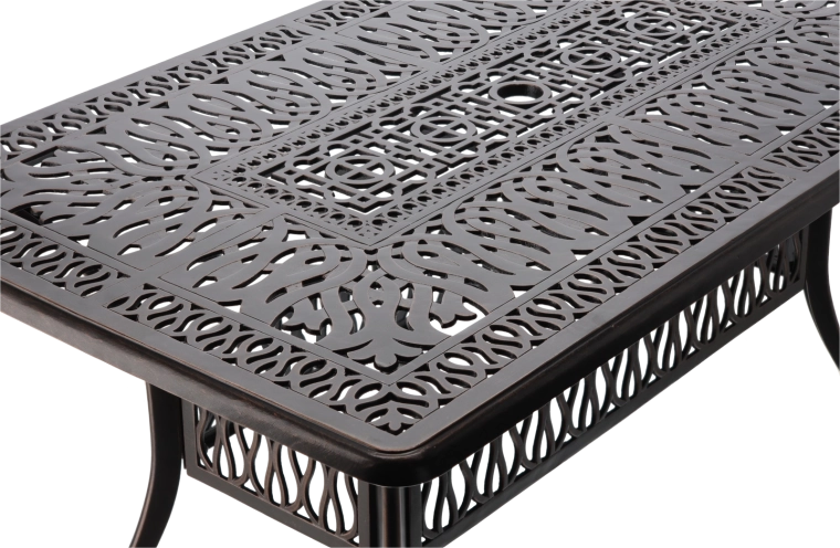 Het rechthoekige blad van 150 × 90 cm biedt comfortabele ruimte voor familie-etentjes, barbecues en bijeenkomsten met vrienden. De stabiele basis en het draagvermogen van 125 kg garanderen betrouwbaarheid bij dagelijks gebruik thuis en in horecagelegenheden.