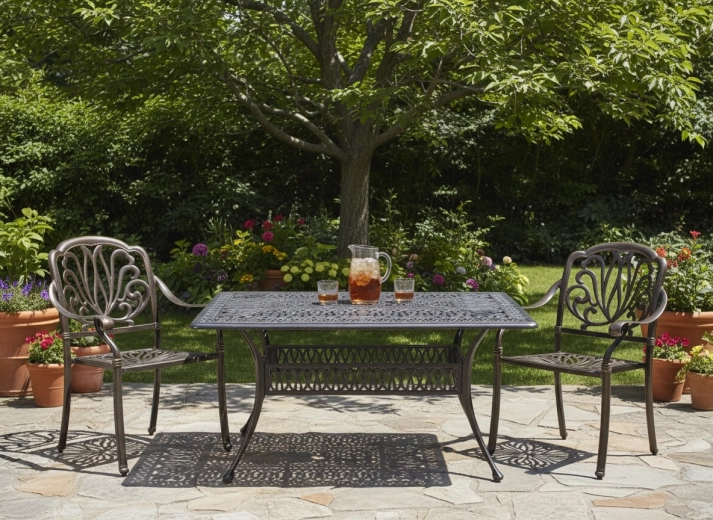 Voor een harmonieuze look is de tafel te combineren met bijpassende tuinstoelen, zodat je een functionele, esthetische set creëert voor ontspanning en stijlvol gastvrij ontvangen in de buitenlucht.