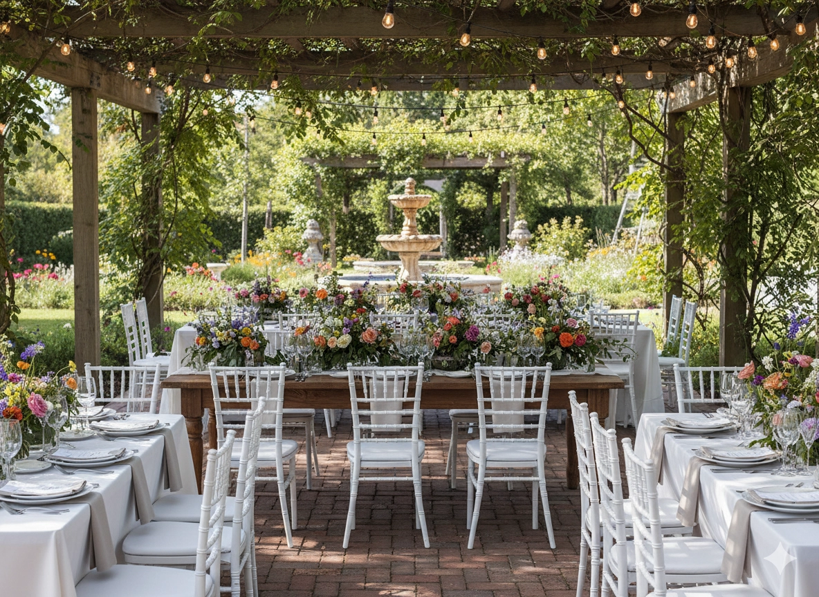 De witte kleur combineert prachtig met tafellakens, bloemen en lichtdecoraties. Zo creëer je in een handomdraai een frisse, fotogenieke setting.