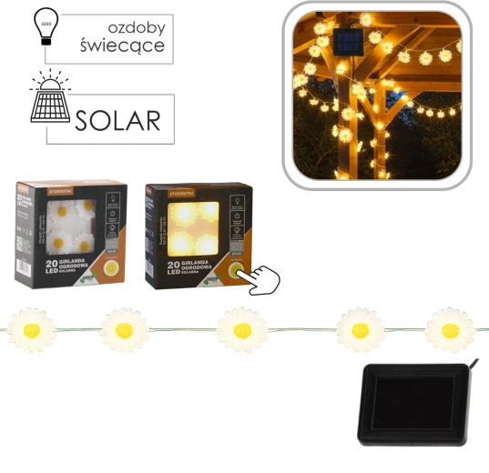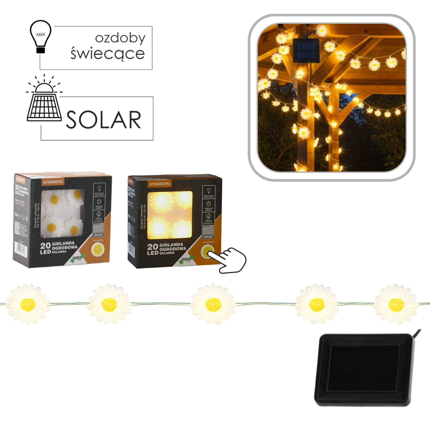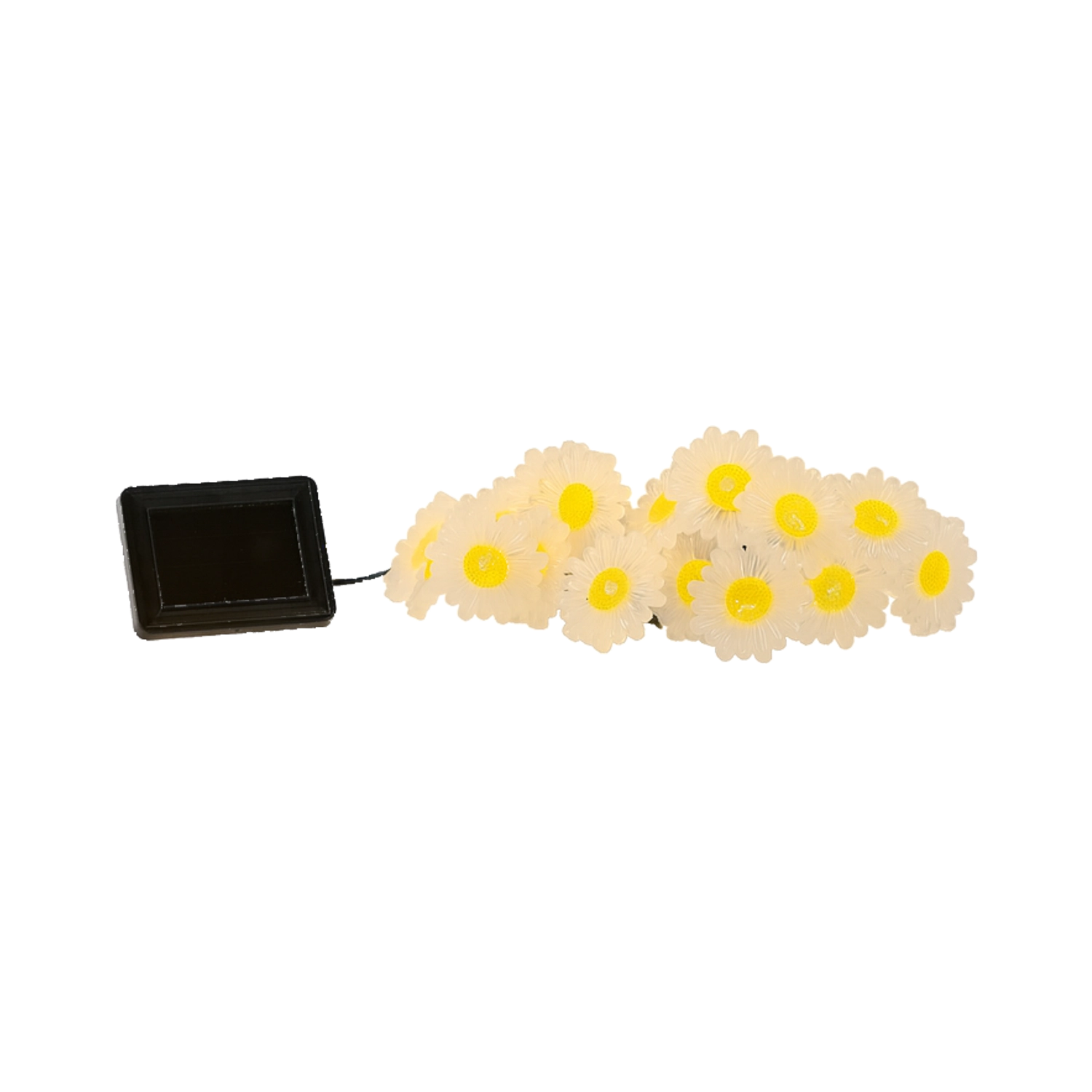 Creëer een knusse sfeer met een decoratieve lichtslinger in de vorm van madeliefjes. Zonne-energie bespaart stroom en maakt draadloze plaatsing mogelijk, overal in de tuin, aan de pergola of op het balkon. Het warme witte licht benadrukt zowel gezellige avonden als feestelijke aankleding.