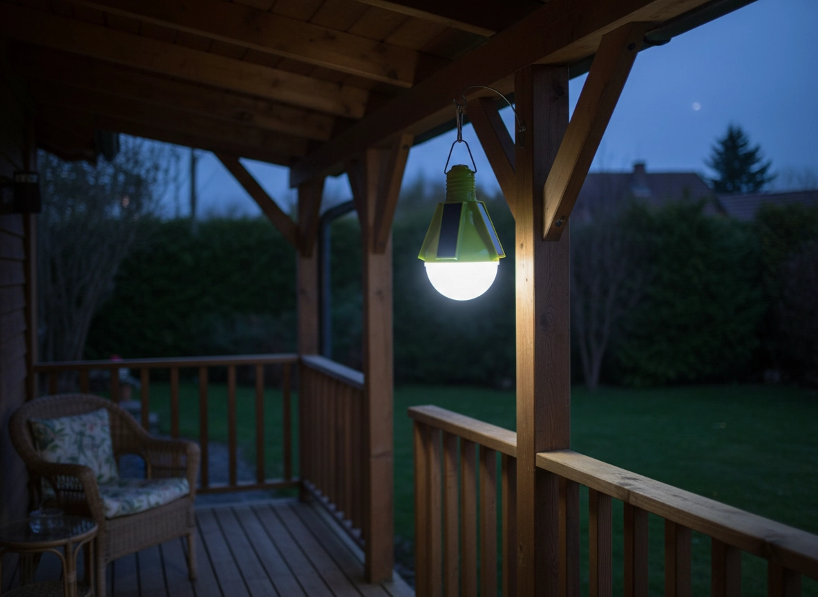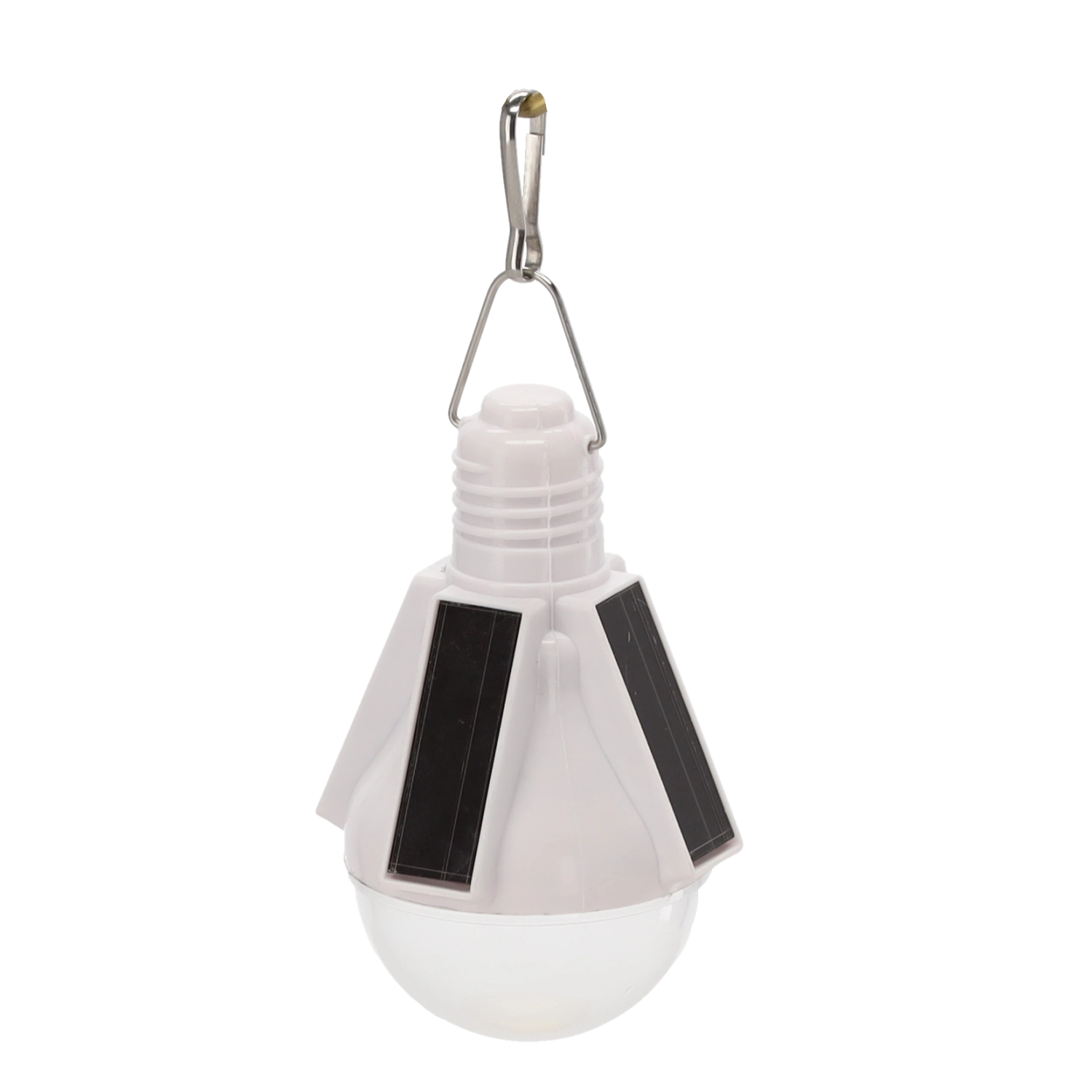 De lamp laadt overdag op via het zonnepaneel en schakelt na zonsondergang automatisch in. De IP44-bescherming garandeert weersbestendigheid, ideaal voor gebruik buitenshuis gedurende het hele seizoen.