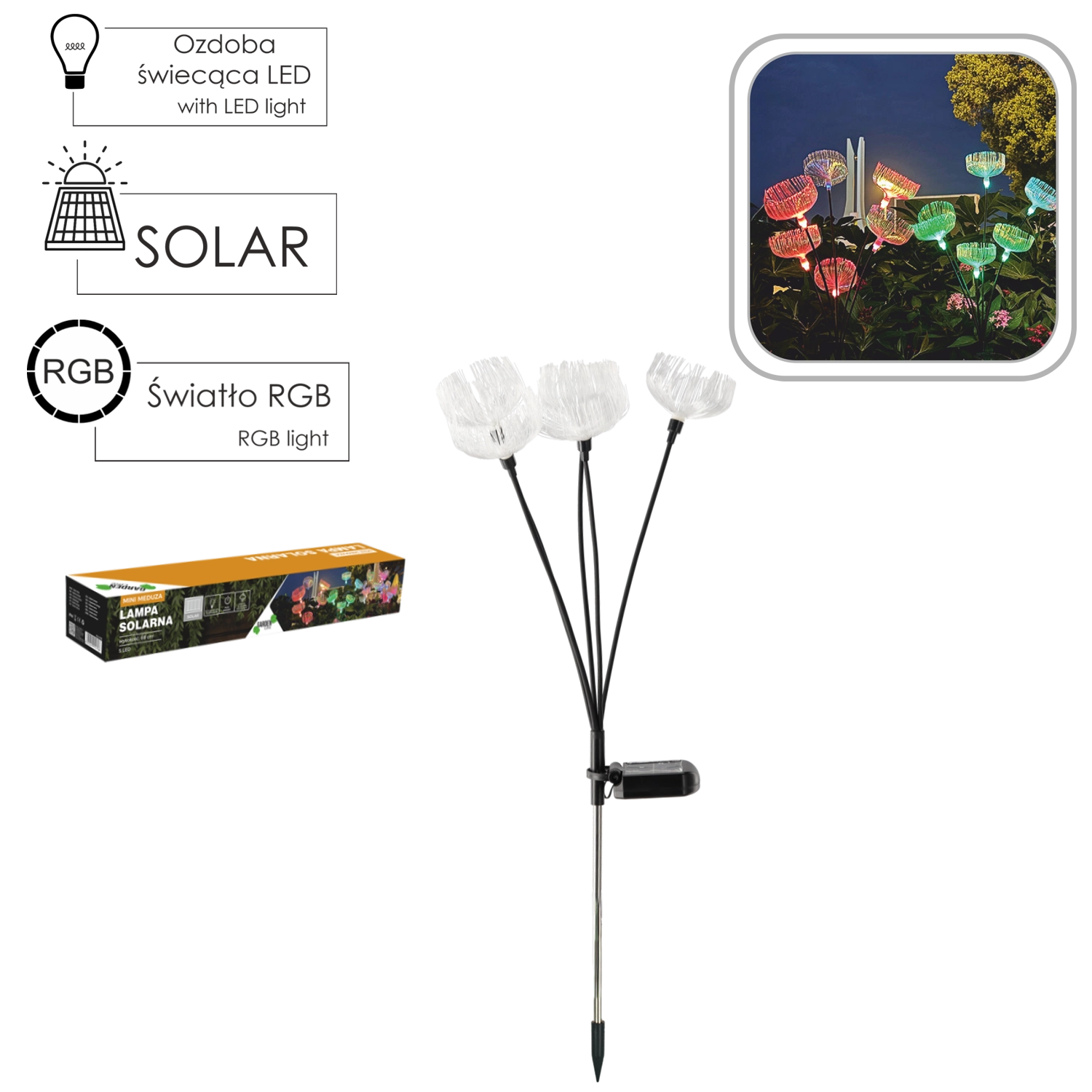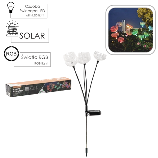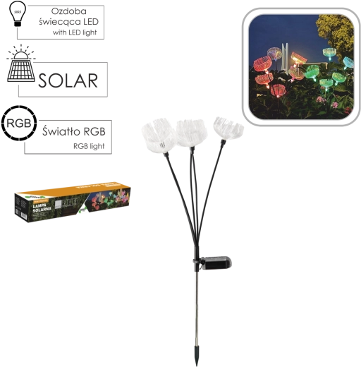 De voeding wordt verzorgd door een amorfe zonnecel 2 V / 80 mA en een vervangbare Ni-MH AA 1,2 V / 200 mAh-batterij. Na volledig opladen brandt de lamp 6–7 uur en schakelt hij automatisch in bij schemering. Het draadloze ontwerp maakt eenvoudige installatie zonder bekabeling mogelijk – gewoon in de grond steken.