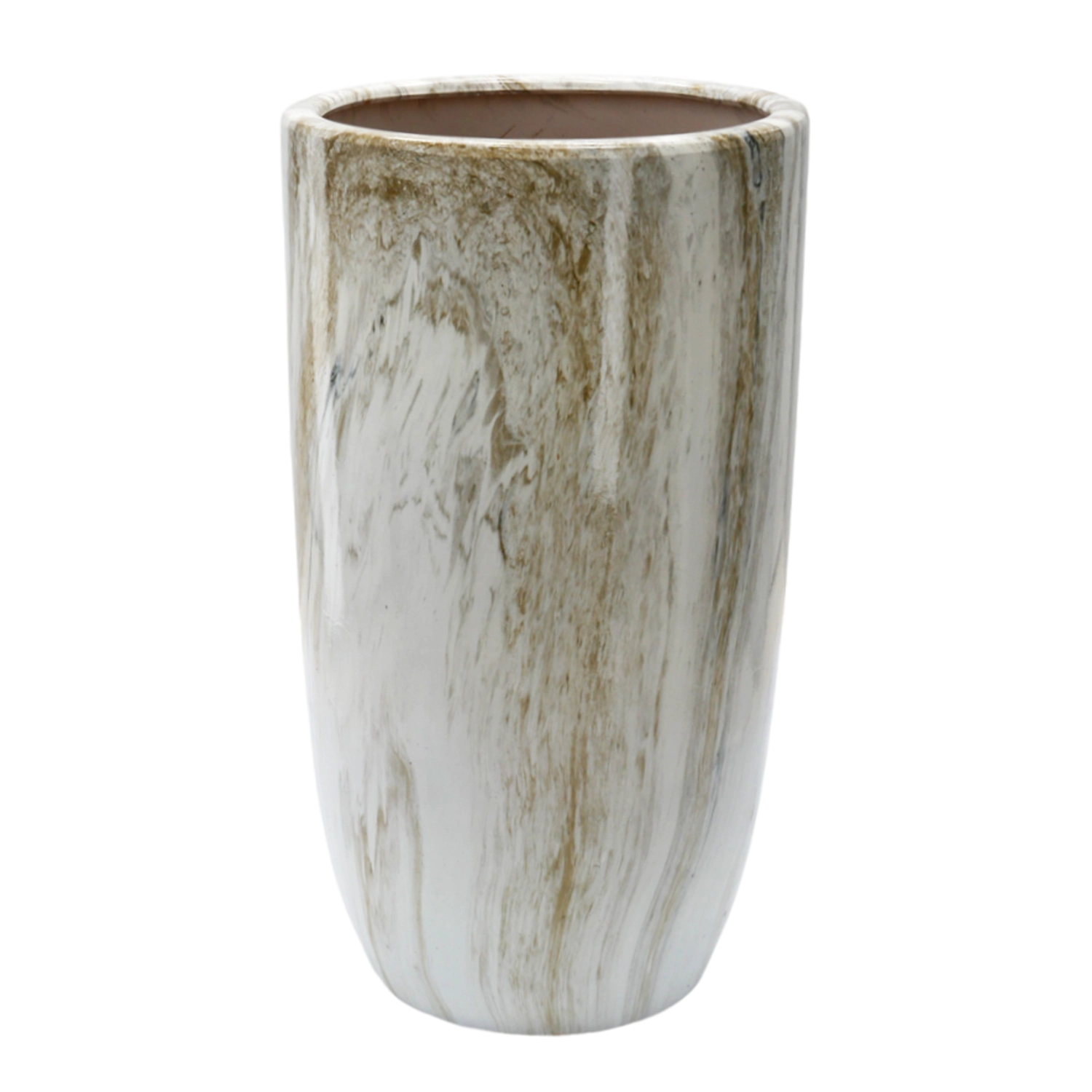 Stijlvolle keramische plantenbakhoes met een marmer-effect in het formaat 40 × 40 × 74 cm geeft je ruimte een luxueuze uitstraling. Gemaakt van hoogwaardige keramiek, duurzaam, gemakkelijk te reinigen en geschikt voor zowel binnen als buiten. Ideaal voor grotere planten, waarvoor het een stabiele en ruime basis biedt.