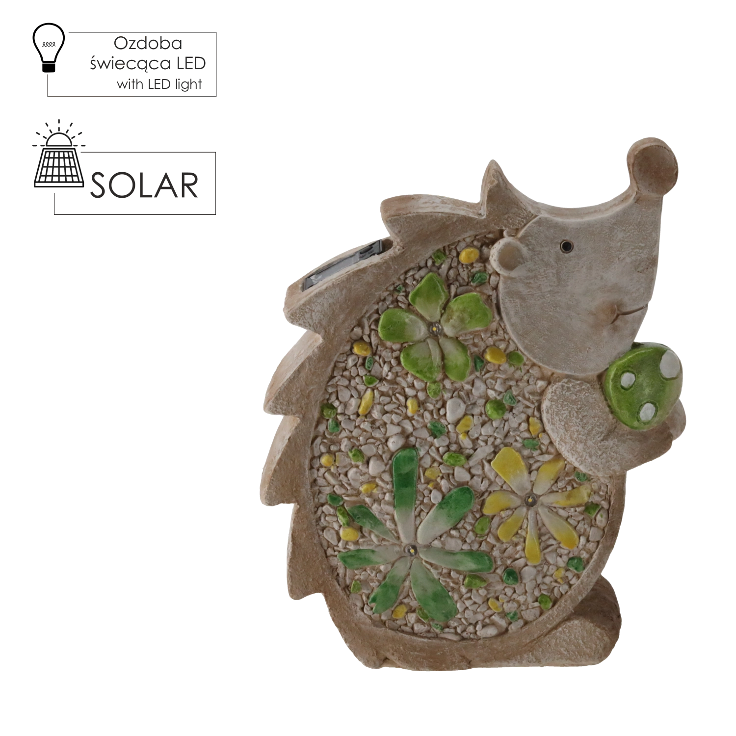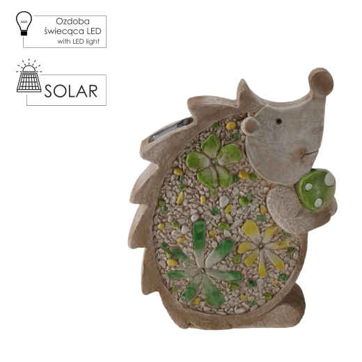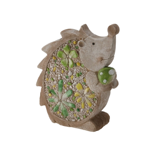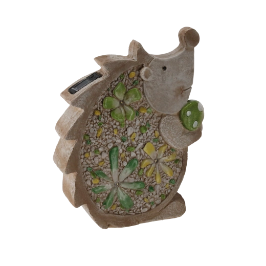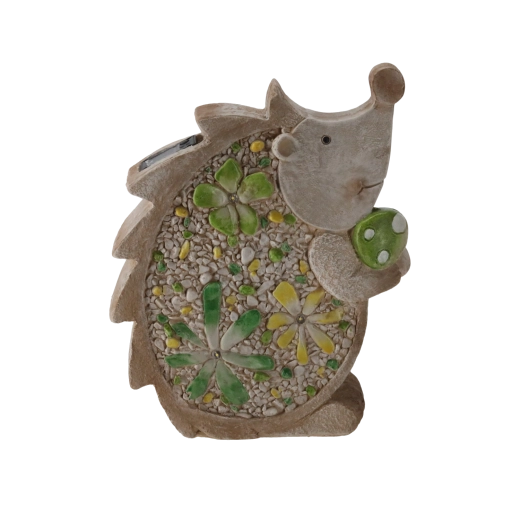 Stijlvol tuinbeeld van een egel met zonne-LED-verlichting dat je tuin, terras en balkon verlicht met een zacht, prettig licht. Dankzij het platte ontwerp en de afmetingen 28 × 9,5 × 34,5 cm is het gemakkelijk op diverse ondergronden te plaatsen en de duurzame uitvoering zorgt voor een lange levensduur, ook bij buitengebruik.