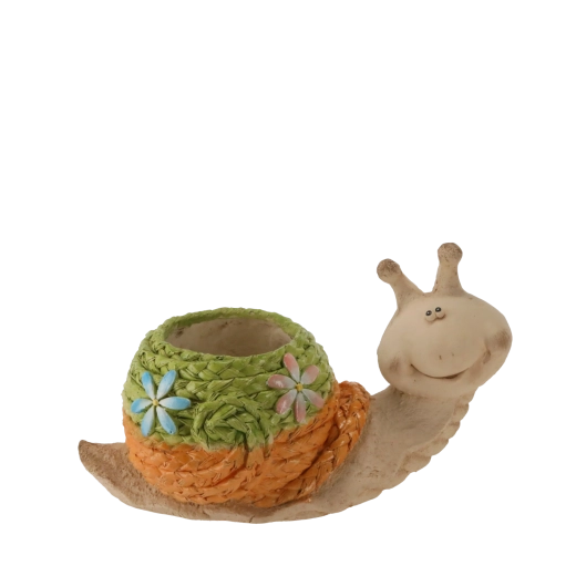 Breng je buitenruimte tot leven met een designbloempot in de vorm van een slak, die opvalt door de gevlochten structuur van de schelp en de natuurlijke steenlook. Dankzij de hoogwaardige polyresin is hij bestand tegen weersinvloeden en behoudt hij langdurig zijn kleur en vorm. Perfect voor vetplanten, kruiden en kleine bloemen.
