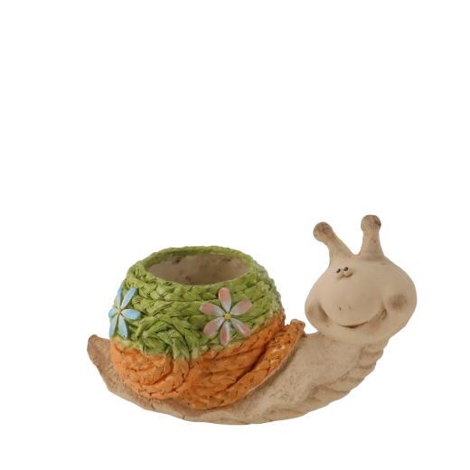 Een originele bloempot in de vorm van een slak geeft je tuin, terras en balkon een eigen charme. Dankzij handgemaakte productie is elk stuk uniek, duurzame polyresin zorgt voor een lange levensduur en veelzijdig gebruik binnen en buiten. Het elegante oppervlak in steenachtige tinten is eenvoudig te combineren met diverse arrangementen en benadrukt de schoonheid van je planten.