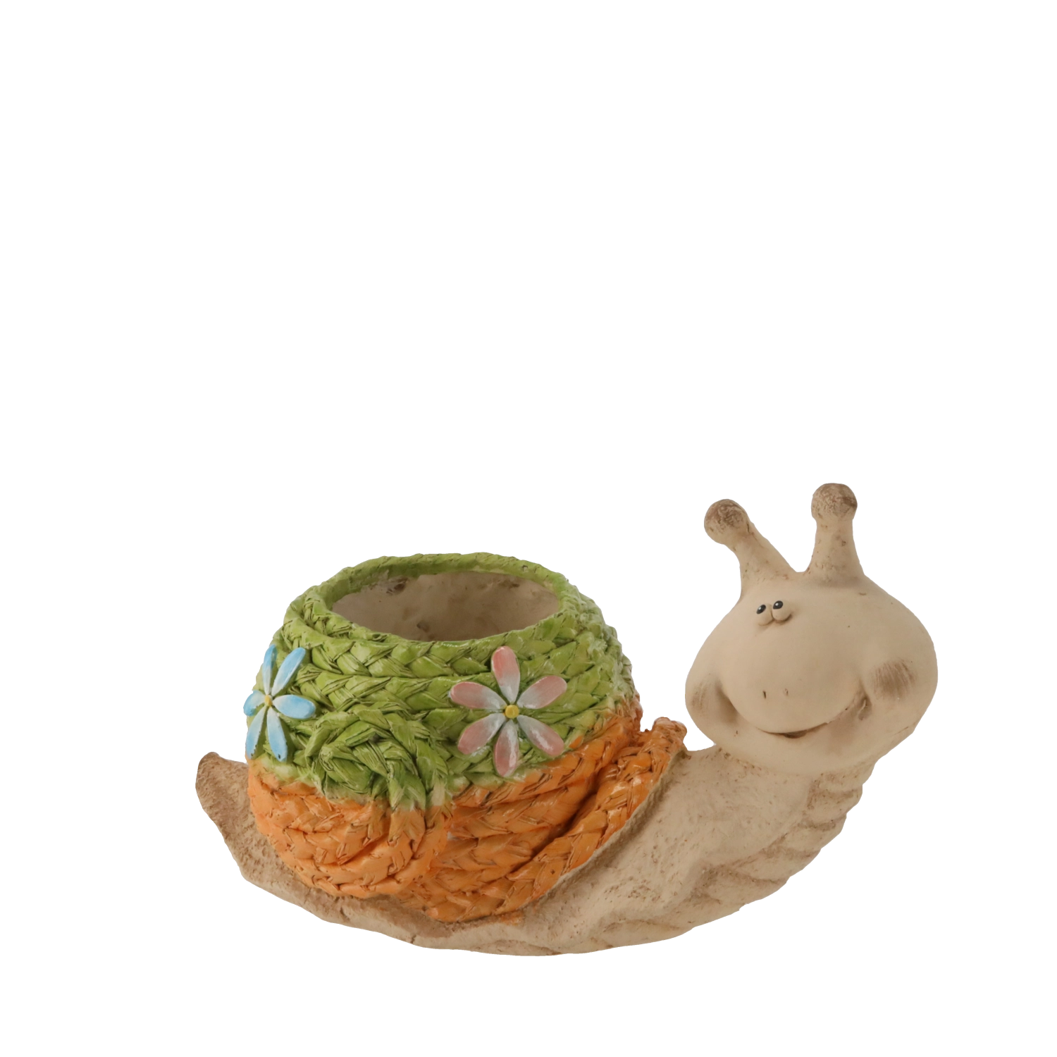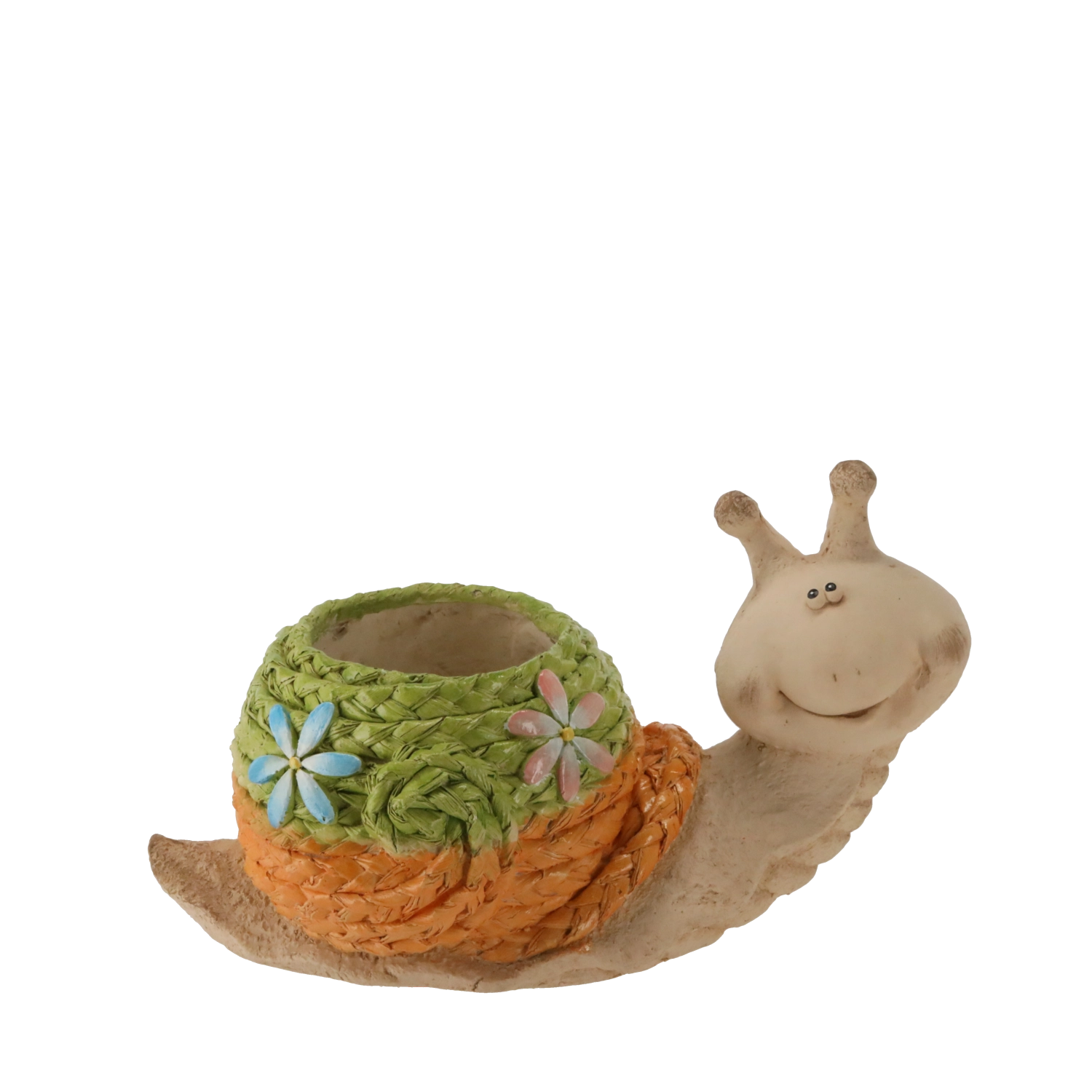 - Slakdesign met gevlochten schelp – een opvallend accent voor tuin, terras en balkon.