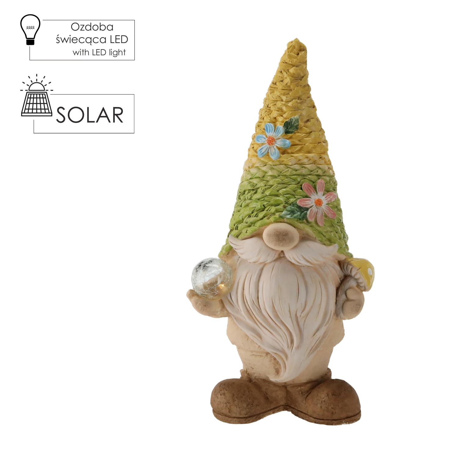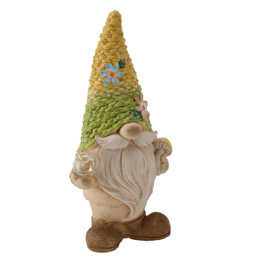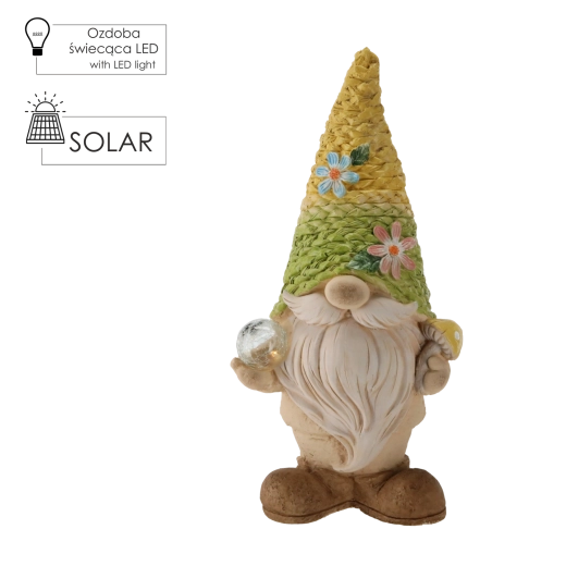 Deze charmante tuinkabouter met een gedetailleerd “gebreide” hoed geeft je buitenruimte een eigen karakter. Dankzij de geïntegreerde LED’s zorgt hij na zonsondergang voor een aangename sfeer en wordt hij een blikvanger in je tuin, op je terras of balkon.