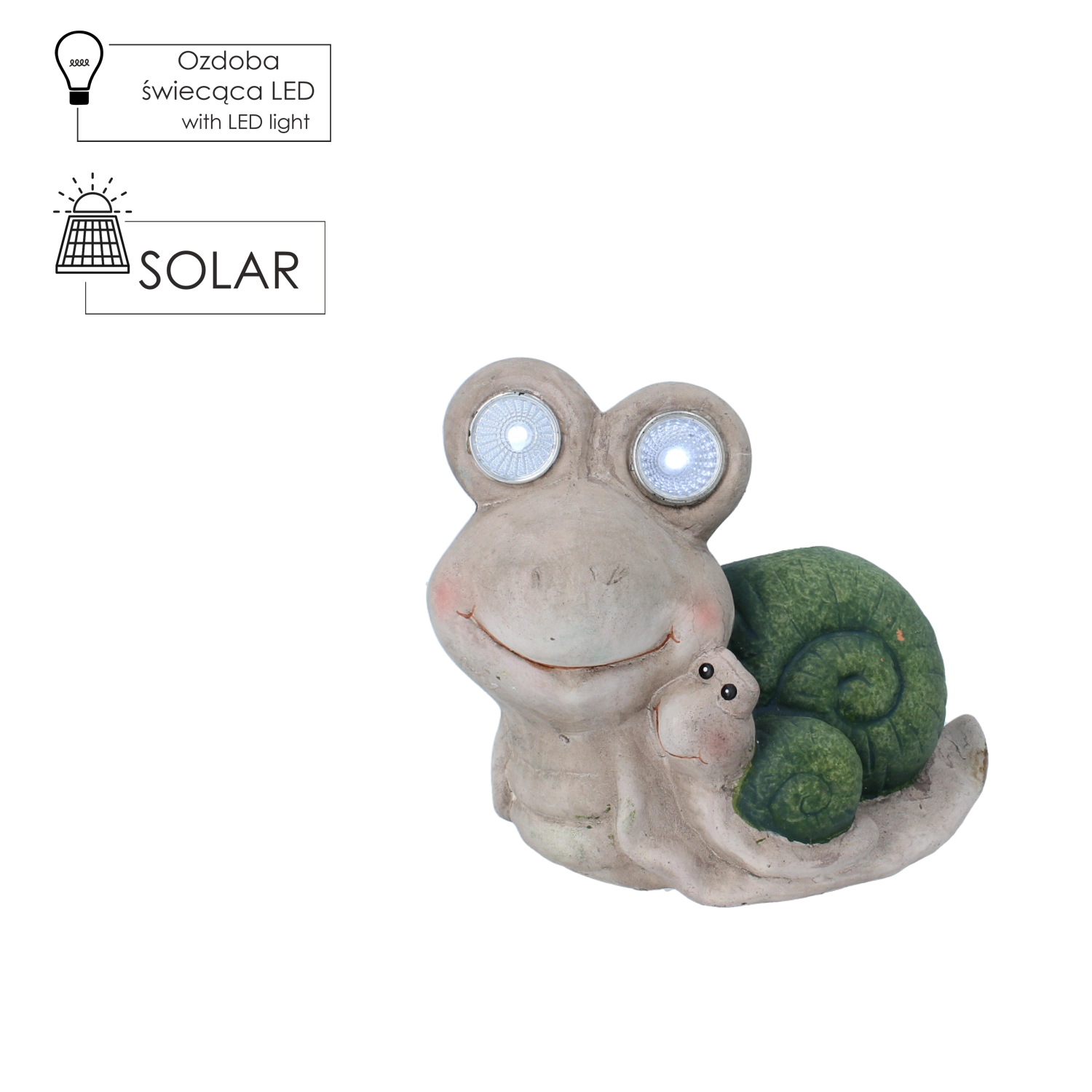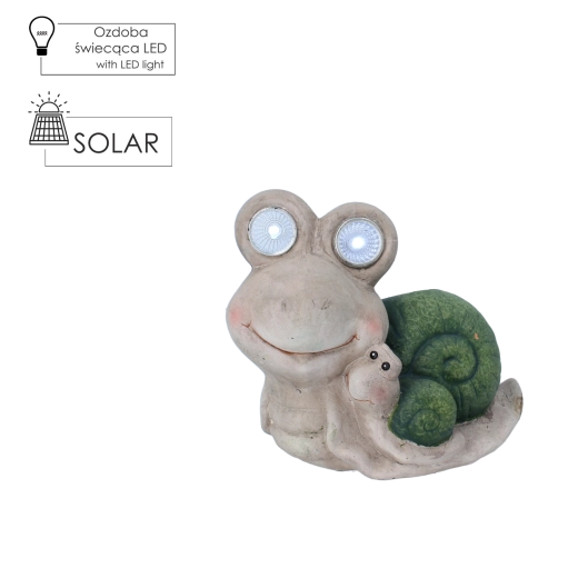 De grote ogen van de slak zijn uitgerust met LED’s die bij schemering een aangenaam en subtiel licht creëren. Ideaal als decoratief accent in de tuin of op het balkon.