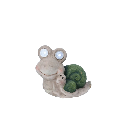 Dit speelse slakkenbeeldje met geïntegreerde LED-ogen brengt een aangename sfeer in je tuin of op je balkon en verandert ’s avonds in een subtiel decoratief lichtje. De fijne texturen van de schelp, de glimlachende uitdrukking en het kleine slakje aan de zijkant geven de decoratie een unieke charme.