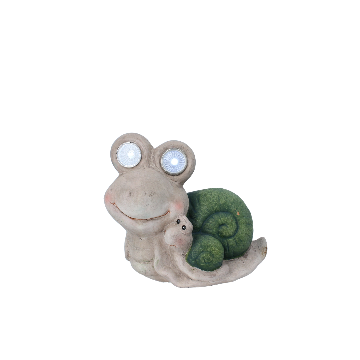 Getextureerde groene schelpen, een glimlach en het kleine slakje aan de zijkant maken van dit beeldje een schattige toevoeging die zowel kinderen als volwassenen zal bekoren.
