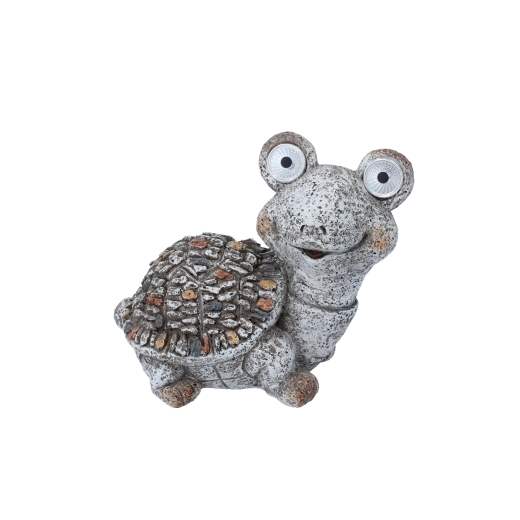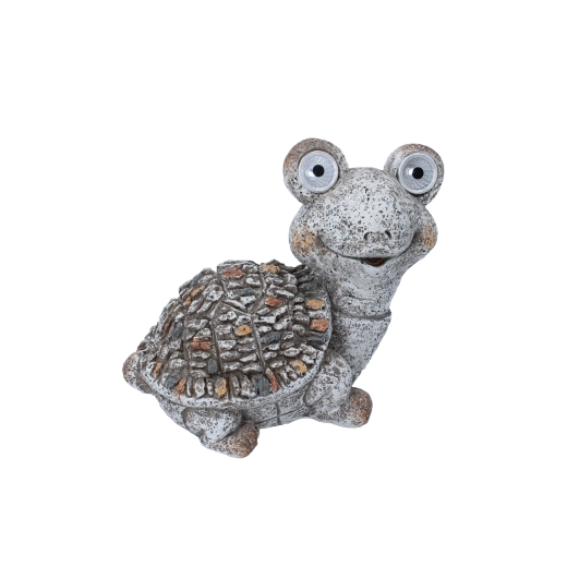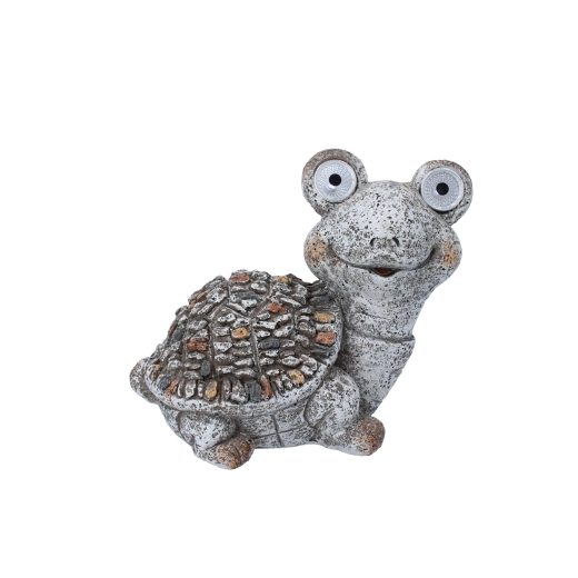 Verlicht je tuin, balkon en terras met een schattige schildpaddecoratie met op zonne-energie werkende ogen. Dit zorgvuldig vervaardigde, met de hand beschilderde beeldje van duurzaam polyresin biedt automatische LED-verlichting, onderhoudsvrije zonne-energie en weerbestendigheid – zet hem gewoon in de zon en hij gaat bij schemering vanzelf aan.
