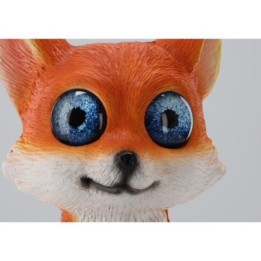 Schattig tuinbeeld van een vos met warm witte LED-verlichting in de ogen dat je tuin een betoverende sfeer geeft. Dankzij de zonne-energie laadt het overdag op en brandt het na zonsondergang zonder kabels. Gemaakt van duurzaam MGO-composiet (magnesiumoxide en glasvezel) voor lange levensduur en weerbestendigheid.