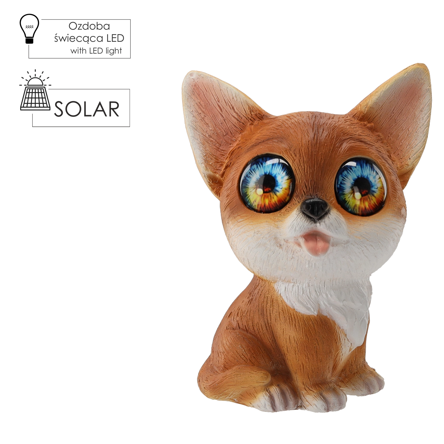 Breng een verhalende sfeer in je tuin met de decoratieve vos, waarvan de ogen zacht gloeien met warm wit licht dankzij twee geïntegreerde LED’s. Het zonnepaneel laadt overdag de ingebouwde accu op en na zonsondergang gaat het licht automatisch aan.