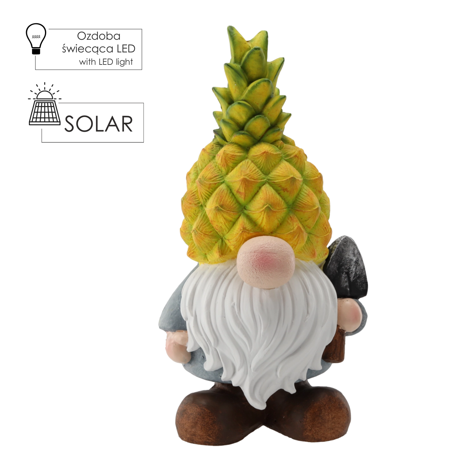De gedetailleerde ananasstructuur en de opvallende baardige kabouter geven je tuin of terras karakter en ’s avonds een gezellige sfeer.