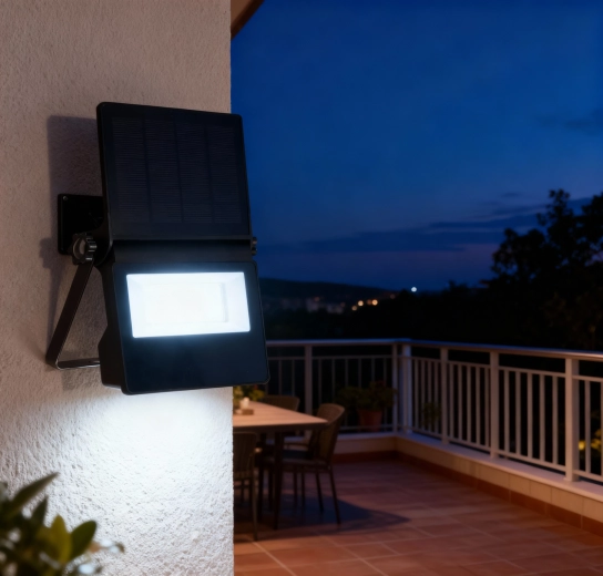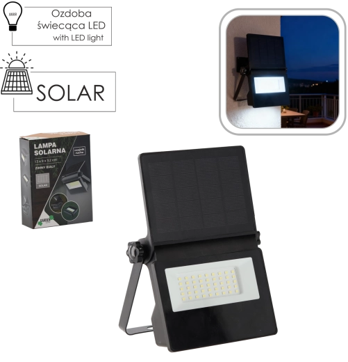 Compacte zonne-LED lamp met bewegingssensor die helder wit licht tot 750 lm levert zonder stroomaansluiting. Dankzij het zonnepaneel 5 V / 1,8 W en de 3,7 V 1500 mAh accu ideaal voor het verlichten van entrees, terrassen, paden of garages. 45 SMD-LED’s, koel wit 4000–8000 K, IP44 voor buitengebruik en een sensorradius van 5–8 m zorgen elke nacht voor betrouwbare werking.