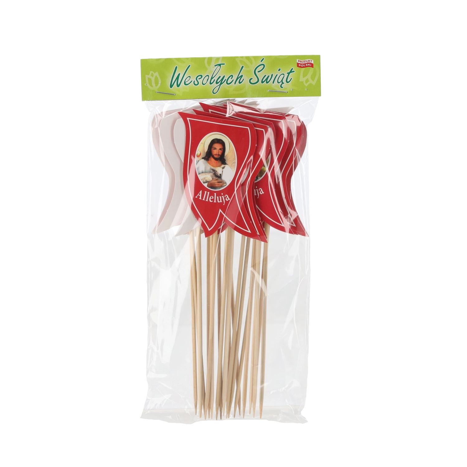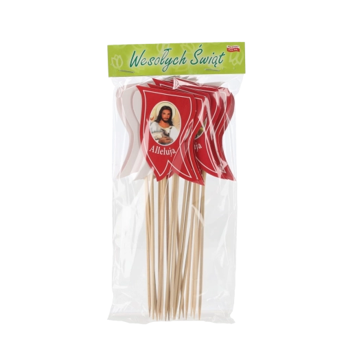 Vrolijk je lentefeest op met feestelijke paasvlaggetjes die perfect passen bij mandjes en traditionele desserts zoals mazurek. De set bevat 20 stuks voor makkelijke en uniforme decoratie van meerdere items of ruimtes. Het lichte papieren materiaal en de eenvoudige toepassing zorgen voor snelle versiering met een opvallend feestelijk effect.