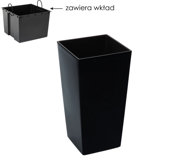 De elegante bloempot Finezja in het zwart met een glanzend oppervlak past perfect in zowel interieur als exterieur. Inclusief een uitneembare inzet met handgrepen voor comfortabel verplanten. De duurzame kunststof is bestand tegen vorst en weersinvloeden en is eenvoudig te onderhouden. Dankzij de slimme afmetingen biedt hij voldoende ruimte voor de wortels zonder dat je het volledige volume met aarde hoeft te vullen.