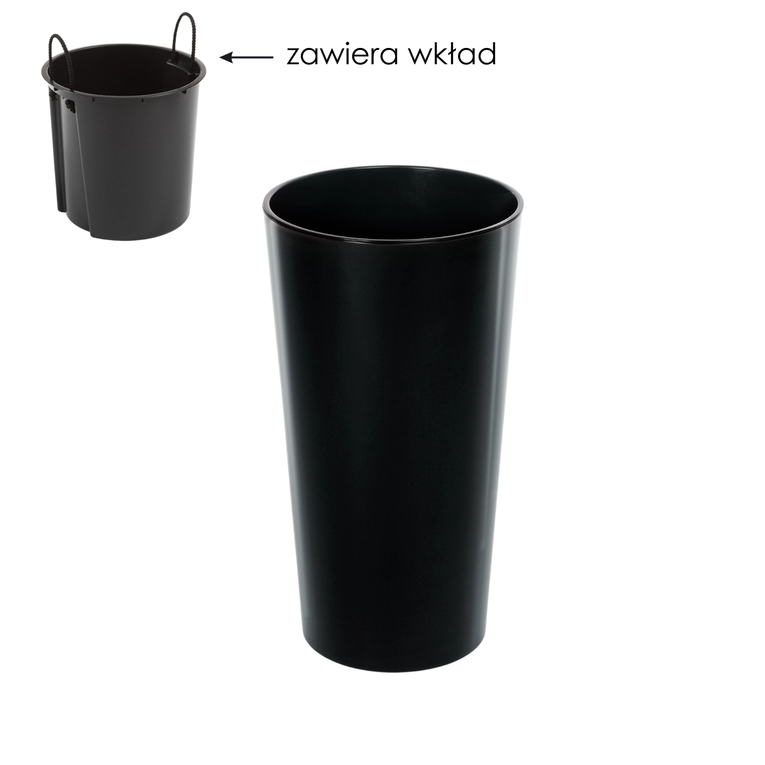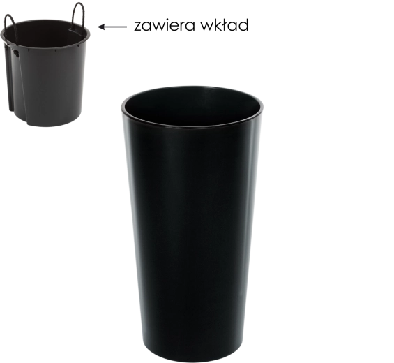 De set bevat een uitneembare inzet die het verplanten vergemakkelijkt. De inzet is voldoende diep, biedt wortels een stabiele omgeving en bespaart tegelijkertijd substraat, omdat je niet het volledige hoge corpus met aarde hoeft te vullen. De geïntegreerde oplossing ondersteunt efficiënte drainage en beschermt de wortels tegen overbewatering en rot.