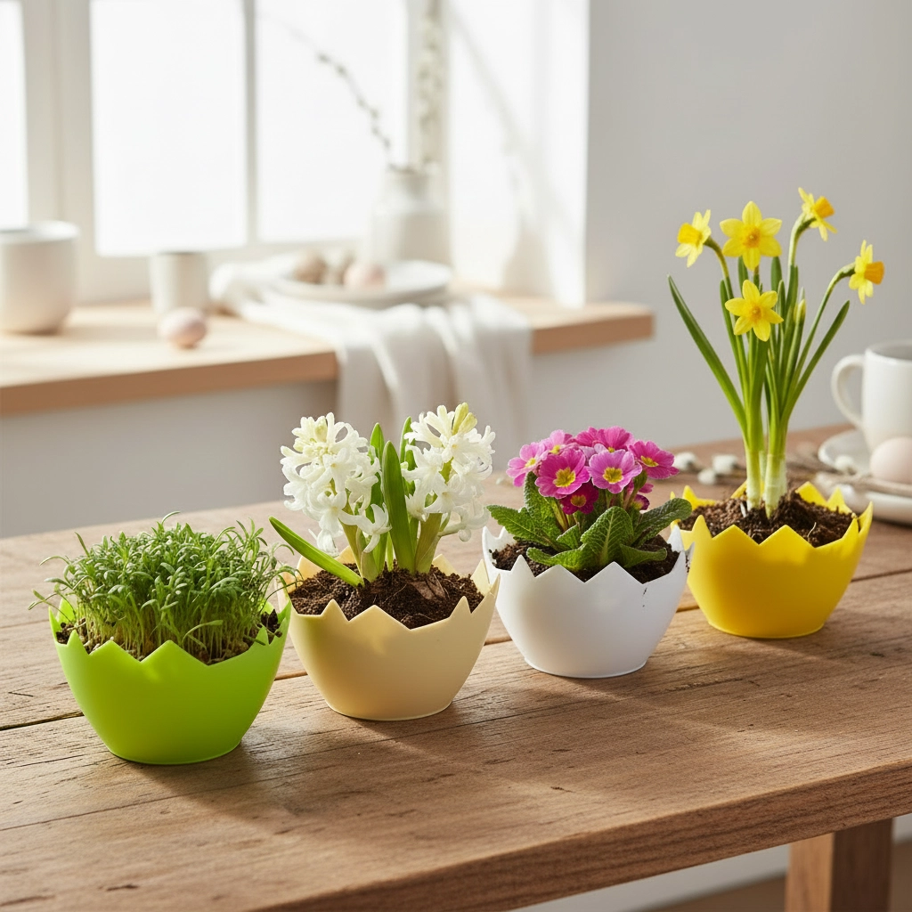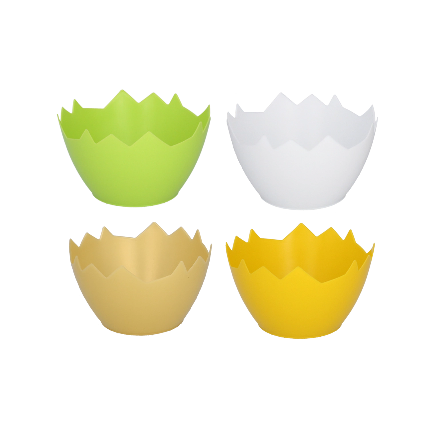 Stijlvolle kunststof bloempothoes met een diameter van 12 cm in de vorm van een gebarsten eierschaal geeft je huis een frisse lentesfeer. Uitstekend dankzij de lichte en duurzame constructie, eenvoudig onderhoud en veelzijdig gebruik voor kruiden, tuinkers en paasarrangementen. Verkrijgbaar in vrolijke kleuren om op je interieur af te stemmen.