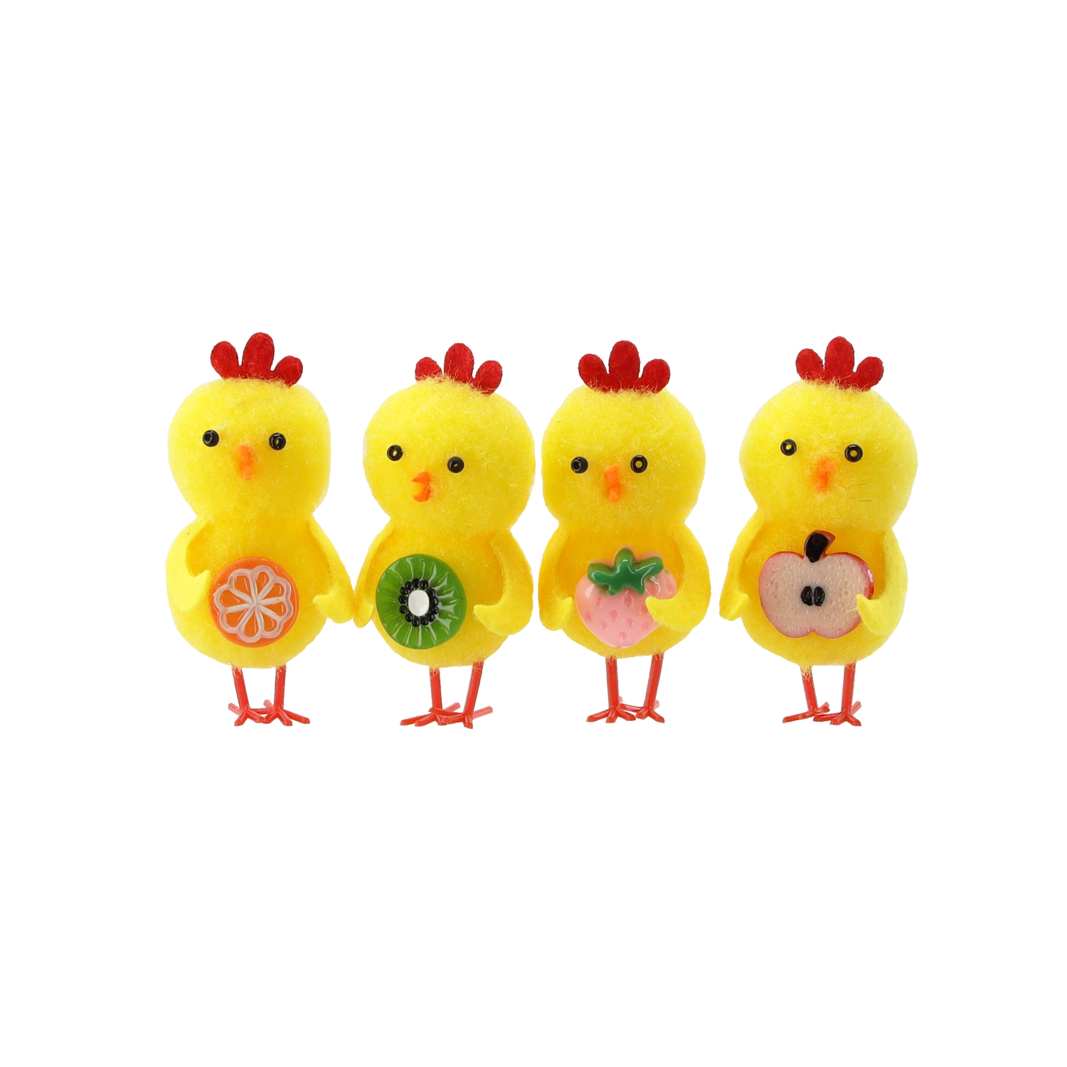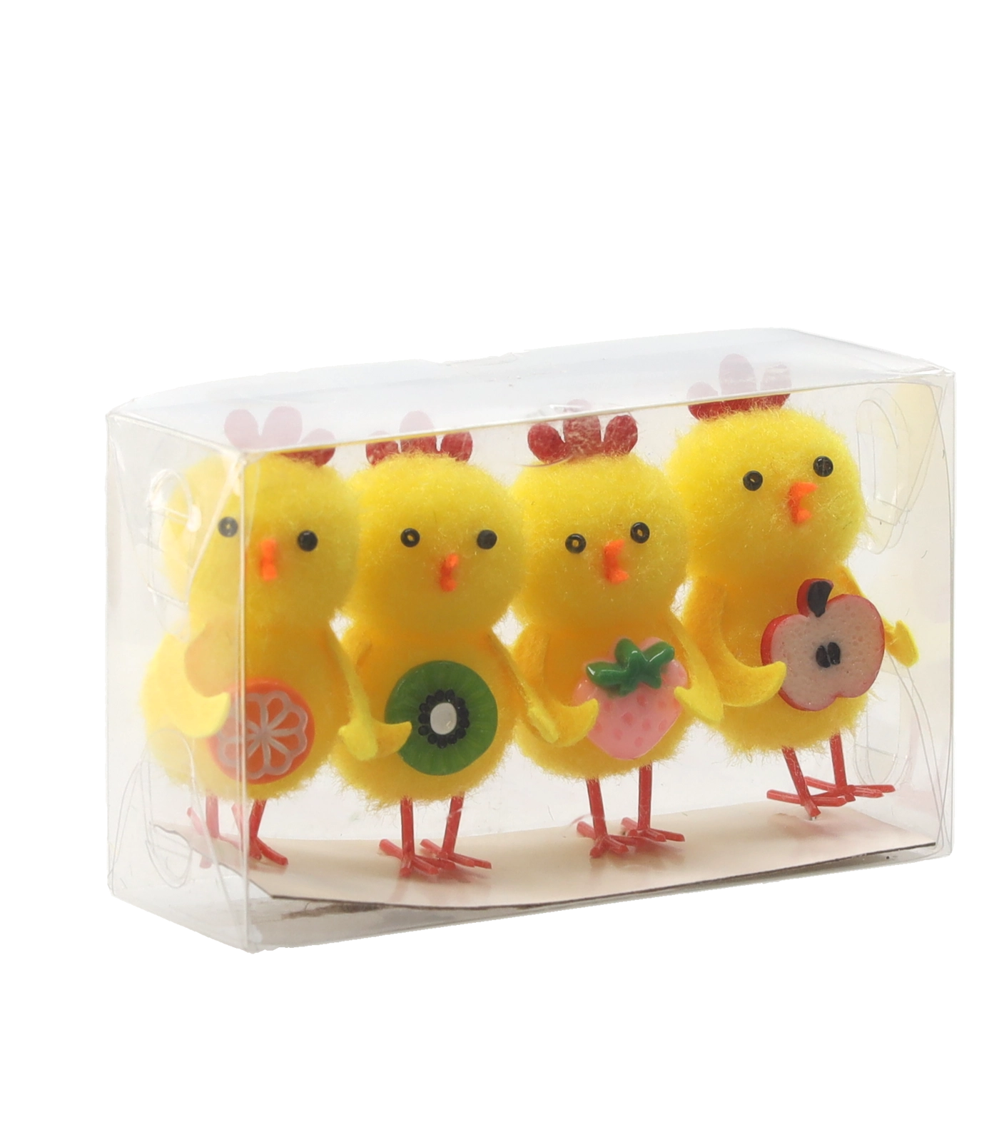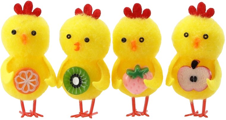 De stijlvolle set van 4 decoraties is perfect voor iedereen die van voorjaarsmotieven houdt. Elk kuikentje houdt een stuk fruit vast, dat overvloed en een nieuw begin symboliseert, en past prachtig bij de paastafel, vensterbank en voorjaarsarrangementen. Dankzij de mix van kleuren stem je de decoraties moeiteloos af op de rest van je versiering.