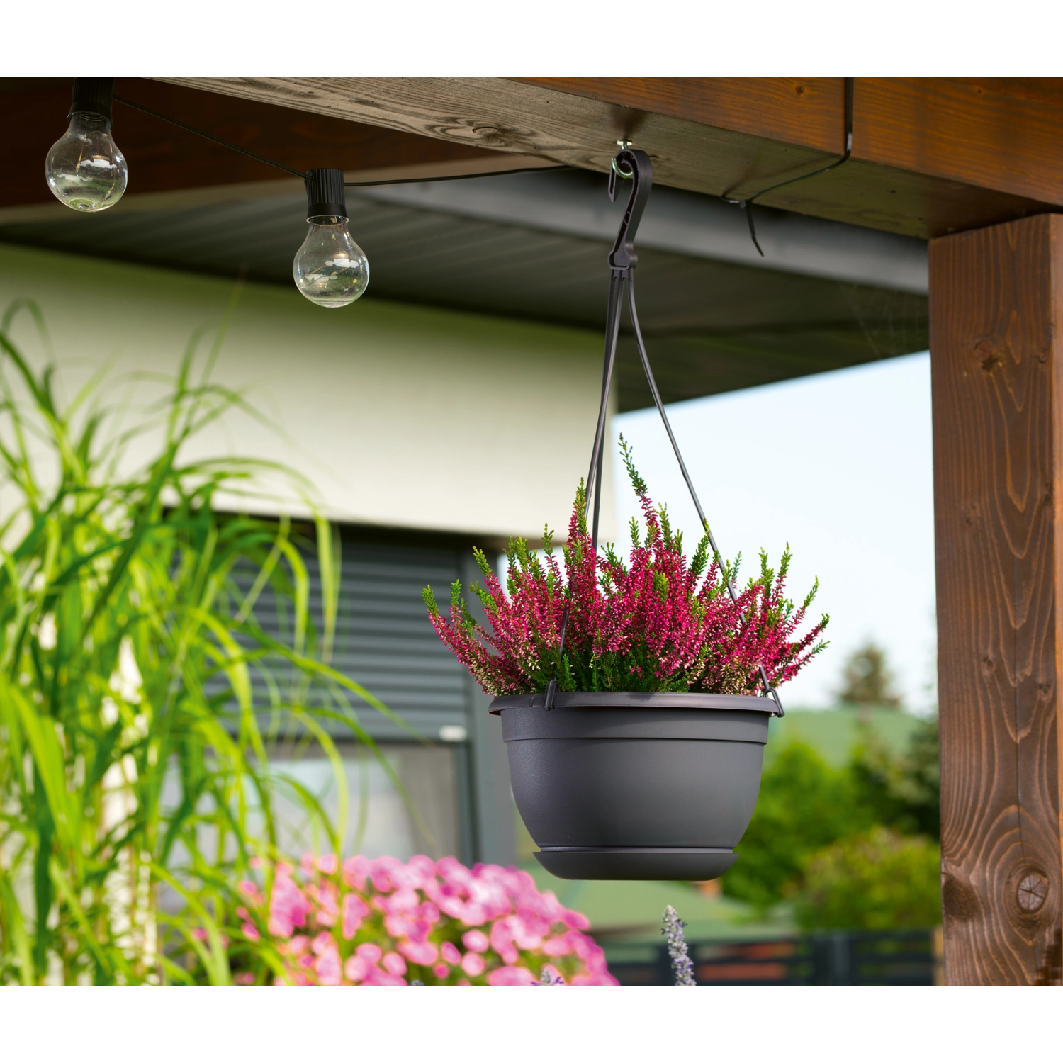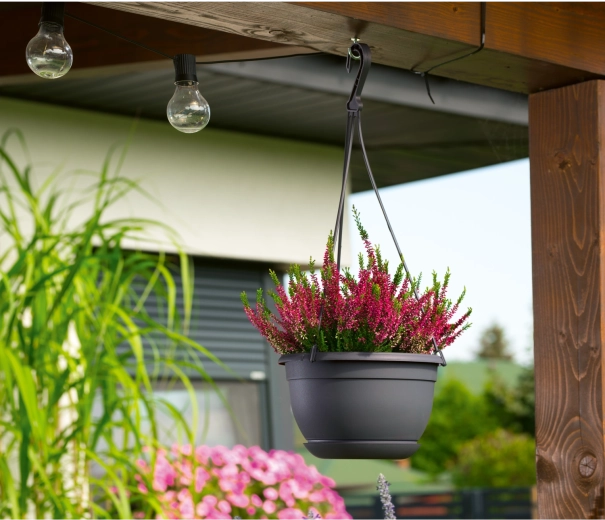 De elegante hangende bloempot Malta met een diameter van 27 cm in antraciet is ideaal voor zowel binnen als buiten. Hij biedt duurzaam kunststof, een moderne matte afwerking, een geïntegreerde schotel met kliksysteem en afvoergaten voor een gezonde groei van planten. Dankzij het ophangsysteem creëer je eenvoudig een aantrekkelijke verticale tuin op het balkon, terras of in huis.