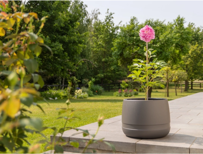 De bloempot Lamela KOMA WAZA 35 cm in tijdloos antraciet past perfect in moderne interieurs en exterieurs. Het gladde oppervlak en de minimalistische vorm accentueren de schoonheid van planten, terwijl het duurzame polypropyleen zorgt voor een lange levensduur en zorgeloos gebruik op balkon, terras en in de tuin.