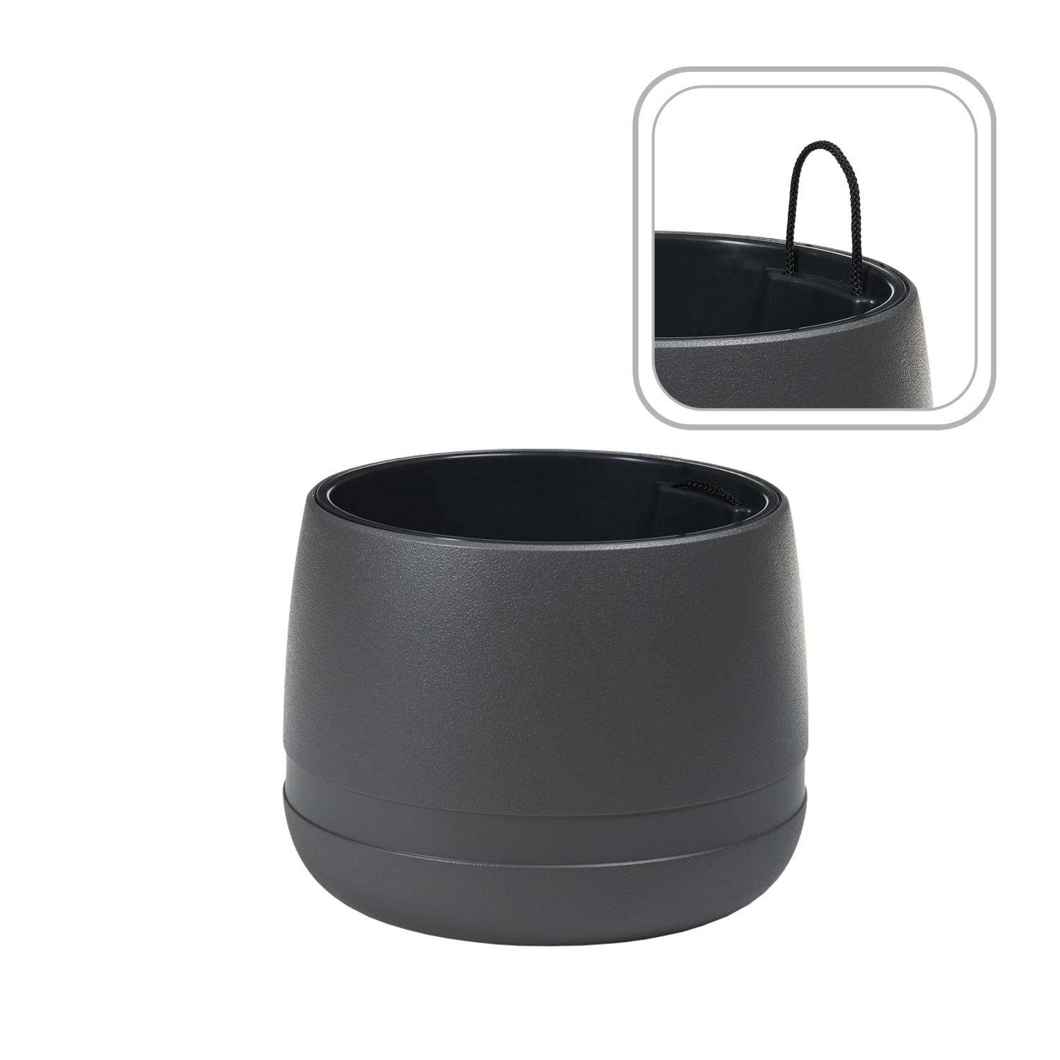 Dankzij het hoogwaardige polypropyleen is de bloempot vorstbestendig tot -40 °C en geschikt voor gebruik buitenshuis het hele jaar door. De binneninzet maakt het planten eenvoudiger, vermindert het substraatverbruik en maakt een snelle wissel van arrangementen mogelijk. De stabiele vorm met lichte versmalling naar boven zorgt voor een stevige plaatsing op vloer en vensterbank.