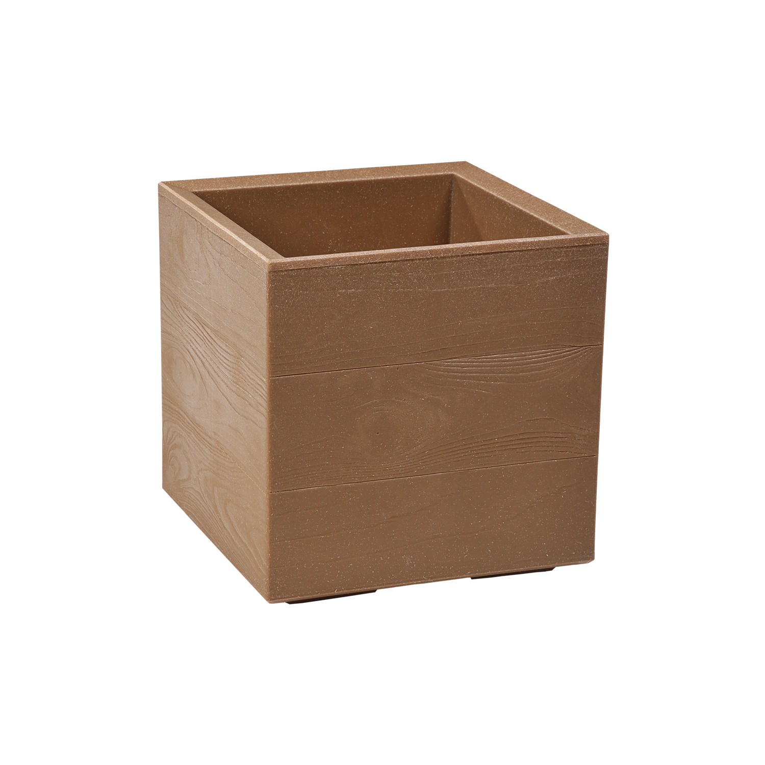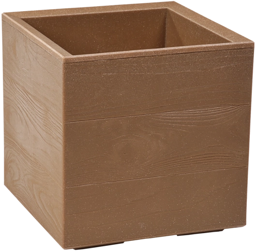 Moderne, vierkante bloempot met een houtlook die een stijlvolle uitstraling combineert met minimaal onderhoud. Gemaakt van gerecycled plastic met houtvezel, vorst- en weerbestendig, met wieltjes voor eenvoudig verplaatsen en een afvoergat met afsluitdop voor gemakkelijke waterregulatie. Geschikt voor binnen en buiten.