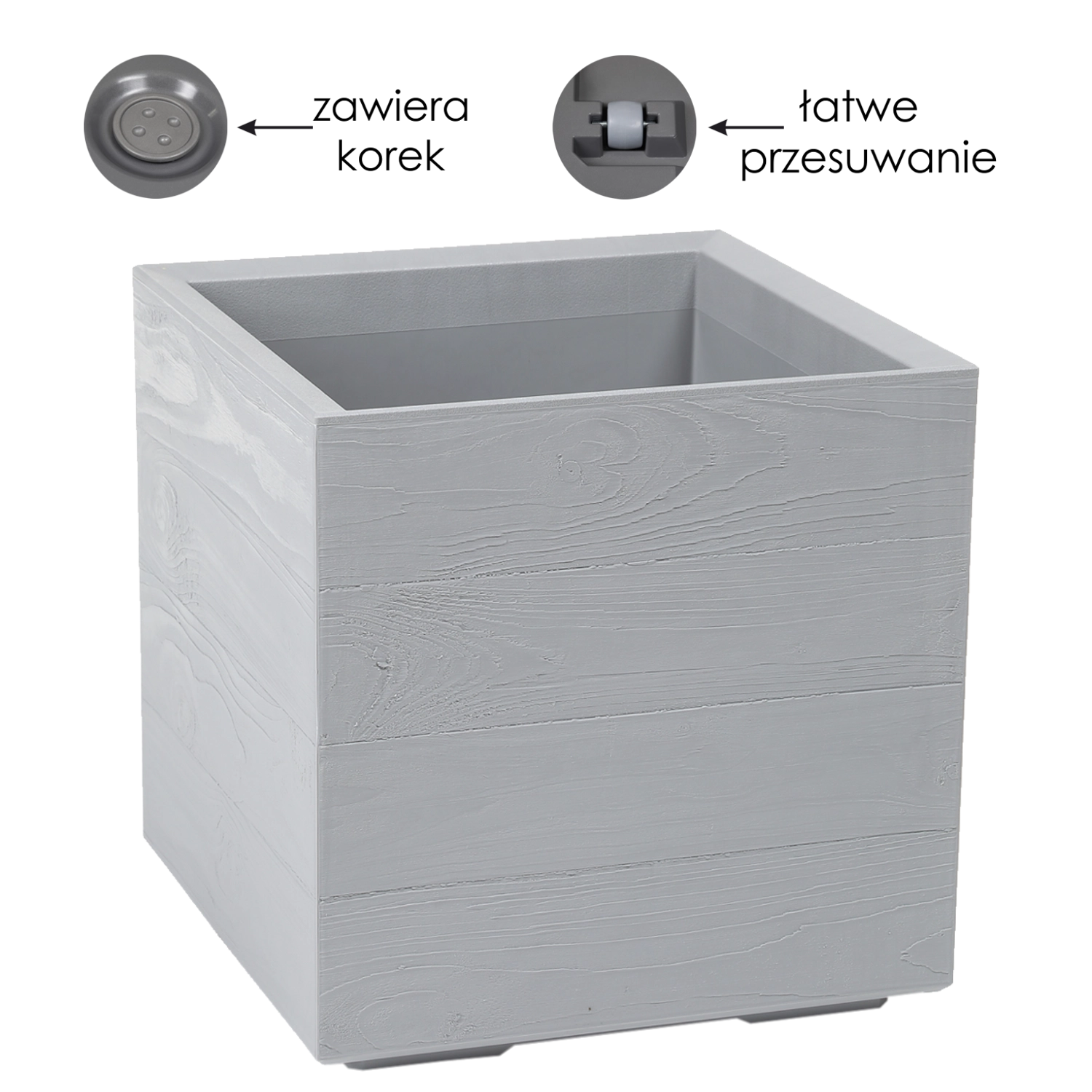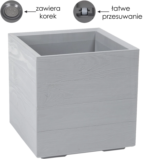De praktische uitrusting omvat een geïntegreerde afvoer met uitneembare stop voor eenvoudige waterregulatie en wieltjes die comfortabel verplaatsen mogelijk maken, zelfs wanneer de pot volledig beplant is. Ideaal voor balkons, terrassen en woonruimtes.