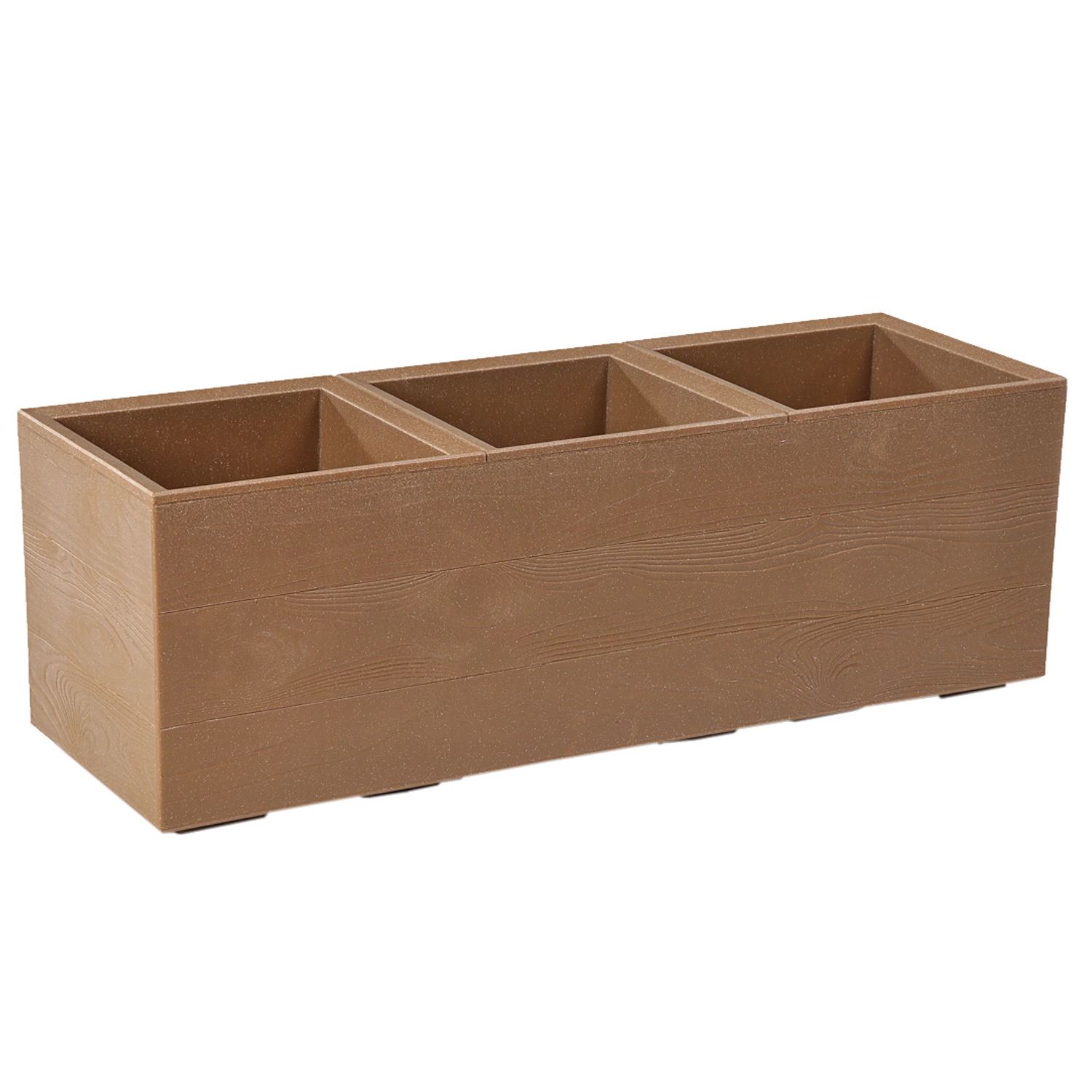 Duurzaam kunststof met een aandeel gerecycled hout (tot 40%) zorgt voor kleurechtheid en weerstand tegen vorst en UV-straling. Het royale volume van 39 liter en de langwerpige vorm bieden voldoende ruimte voor siergrassen, kruiden en bloeiende planten.