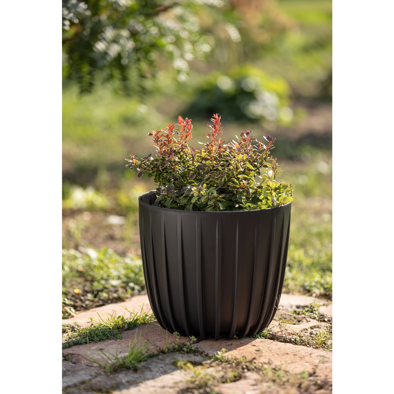 De constructie van gerecycled plastic is licht maar tegelijk duurzaam, waardoor de bloempot zonder zorgen binnen en buiten gebruikt kan worden. Het materiaal behoudt langdurig zijn kleur en vorm, zelfs bij blootstelling aan UV-straling en vocht.