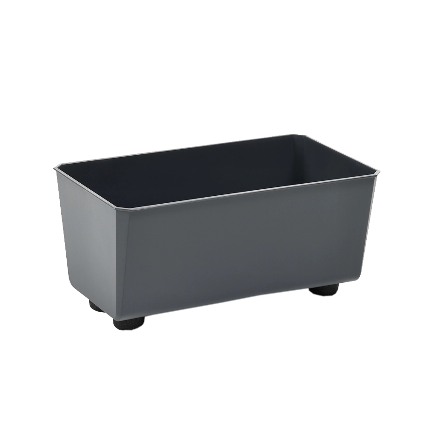 Moderne bloembak van gerecycled plastic in antraciet met een strak, minimalistisch design. Dankzij de compacte afmetingen geschikt voor balkon, terras en vensterbank en ideaal voor kruiden, sierplanten en kleinere groente. Het gladde oppervlak maakt het onderhoud eenvoudig en zorgt langdurig voor een mooie uitstraling.
